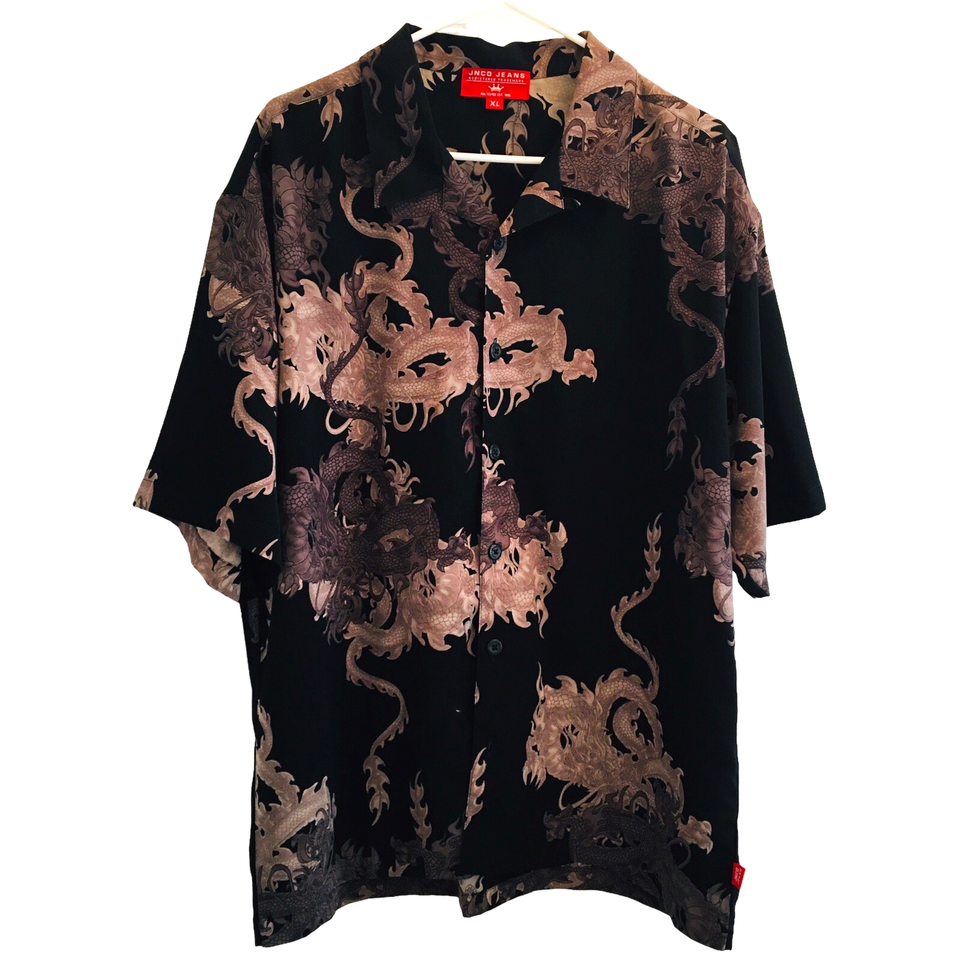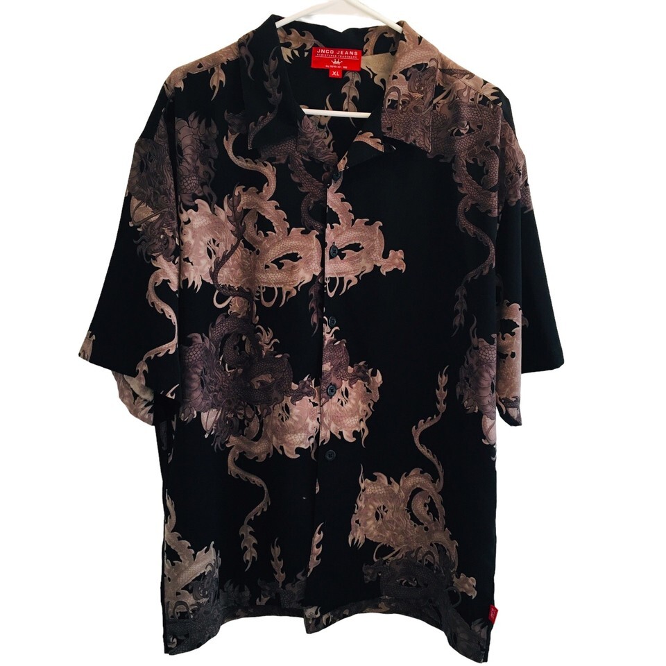 JNCO JEANS Y2K Men XL AOP All Over Print Serpent Blk Polyester Short Sleeve RARE