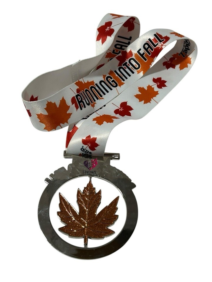 Running into Fall 5K & Fun Walk 2017 Medal Las Vegas Zappos Spinning Medal Leaf