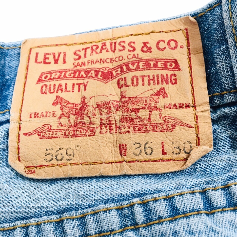 Levis 569 Jeans Mens 35x28 Distressed Baggy Loose Straight Fit Blue Faded Denim