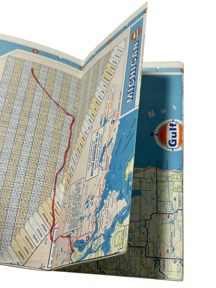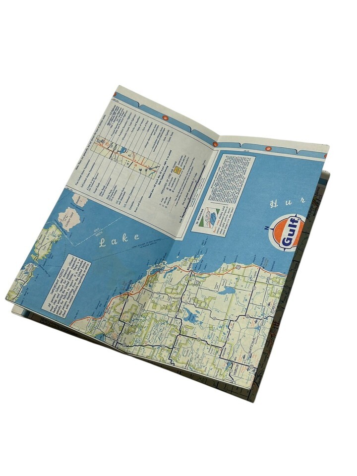 Vintage 1960's Color Tourguide Map 1964 - Ohio and Michigan - Gulf Gas & Oil