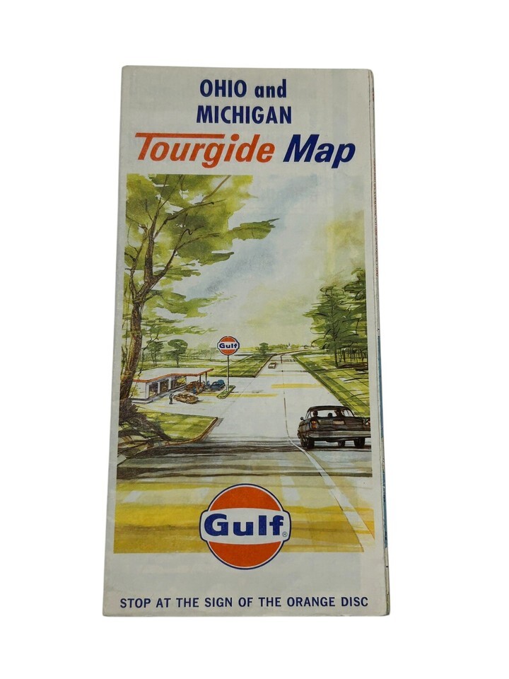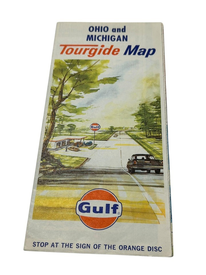 Vintage 1960's Color Tourguide Map 1964 - Ohio and Michigan - Gulf Gas Oil