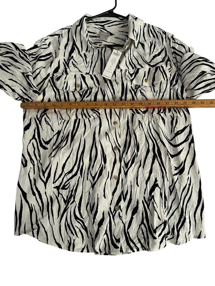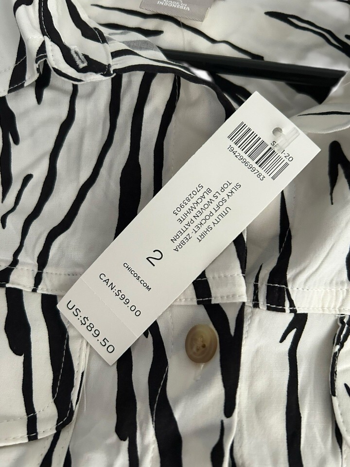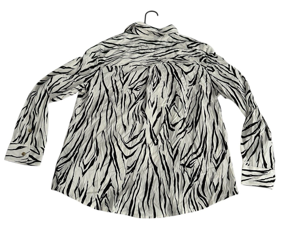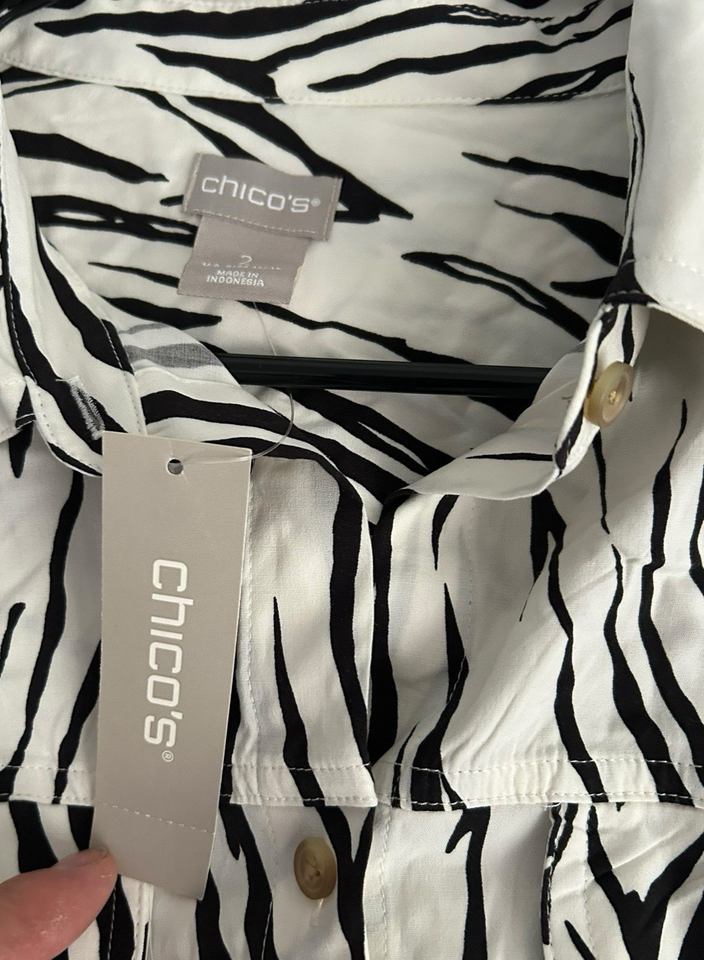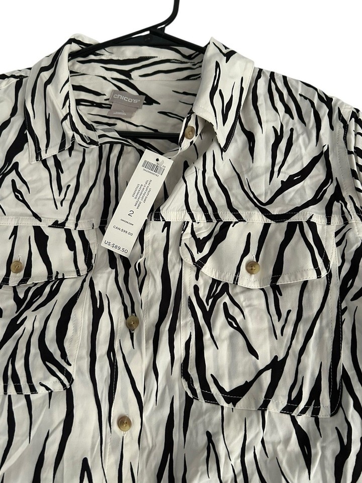 Chico's Sz 2 12/14 Black & White Zebra Print Long Sleeve Blouse w/pockets NWT