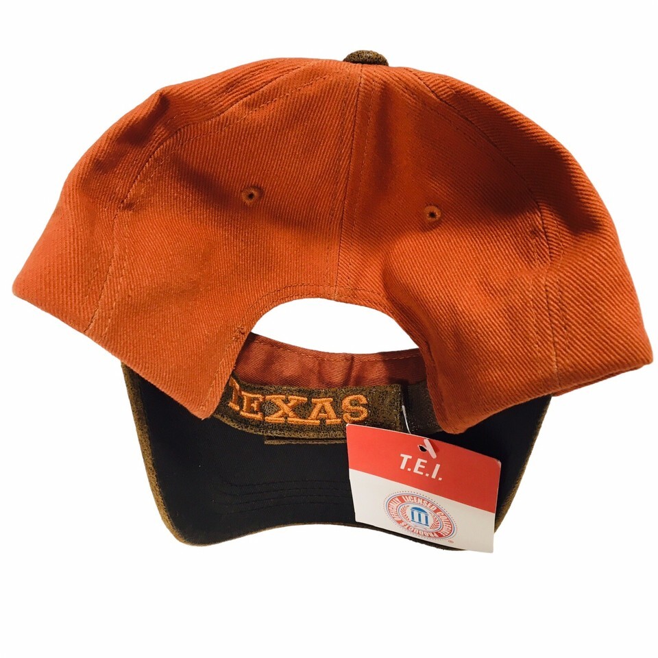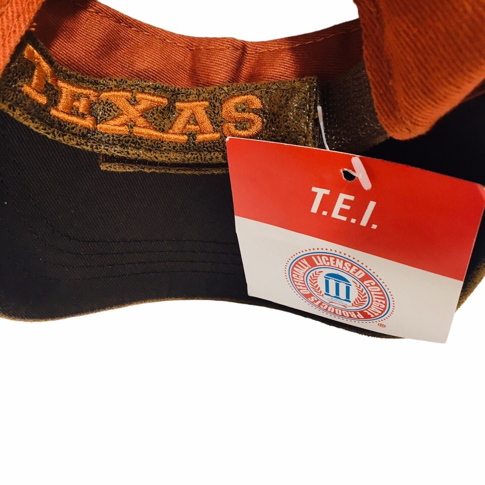NWT VTG 90s Texas Longhorns Suede Bill T.E.I. Strapback Spell-out Hat Cap 1995