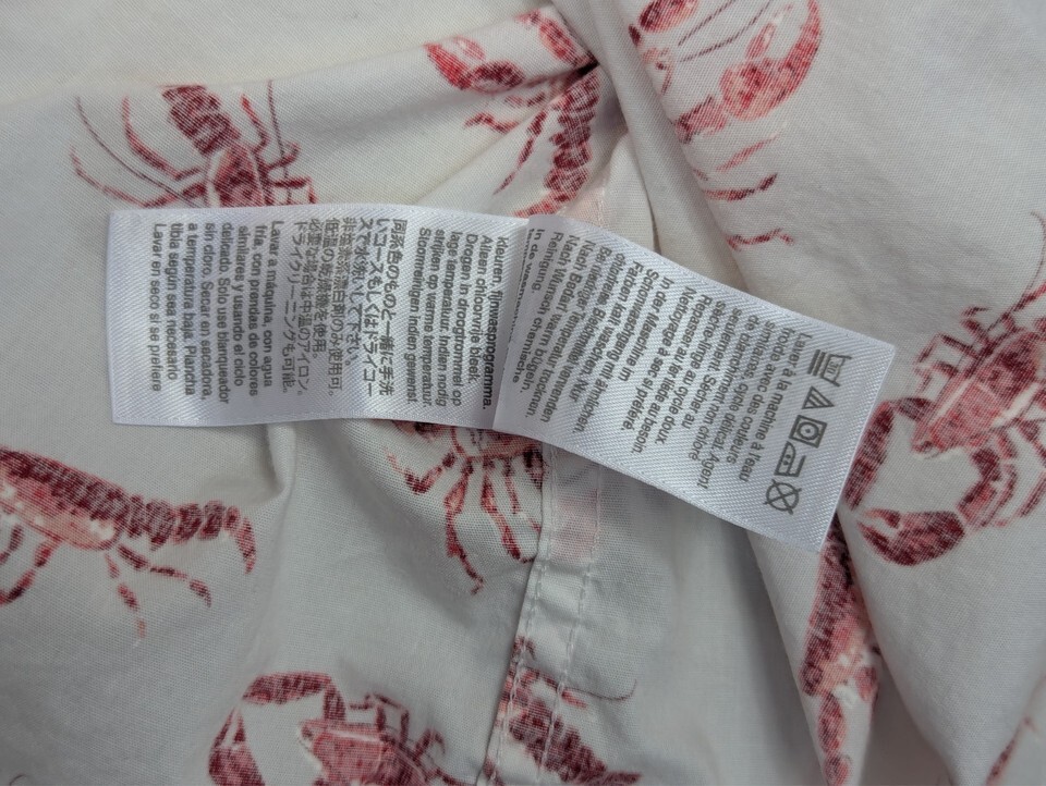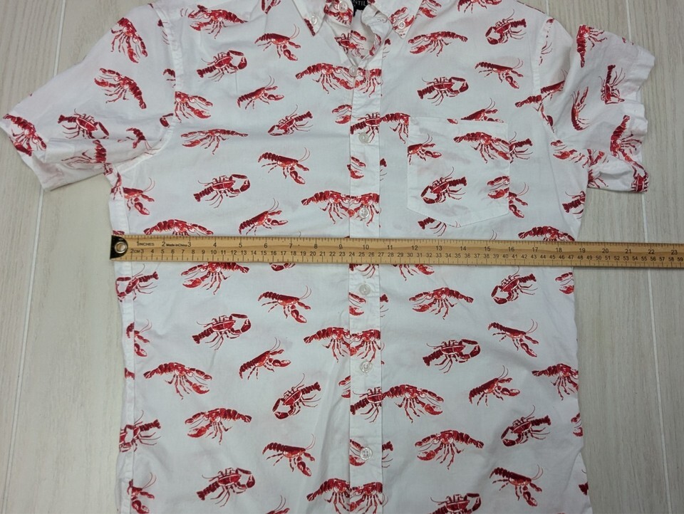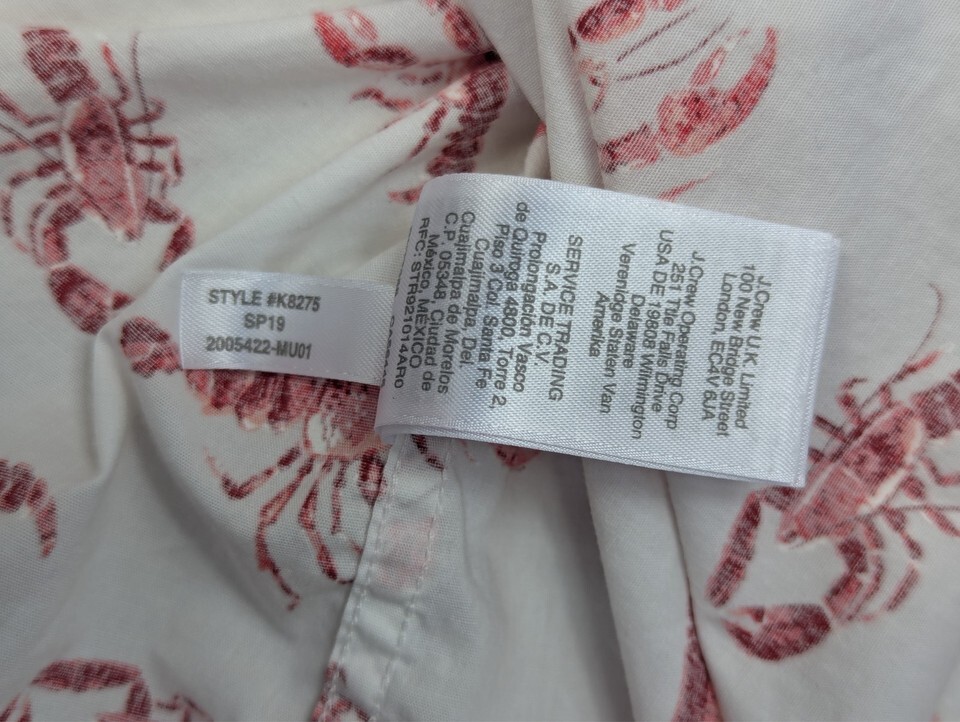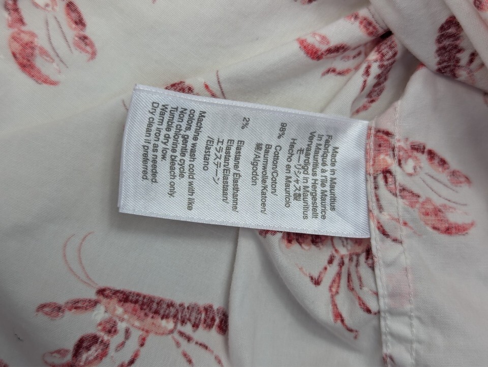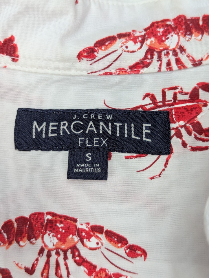 J Crew Mercantile Flex Small button front white red lobster print shirt