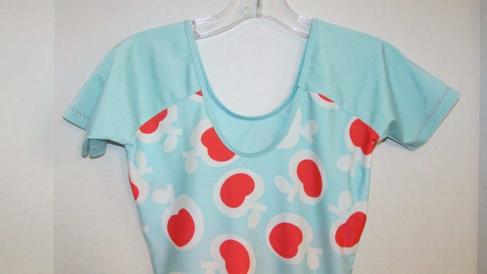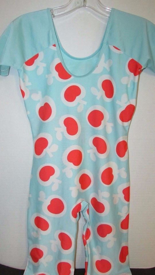 girls It's My Way modest swim suit Medium 10 12 1pc aqua orange cherries peaches
