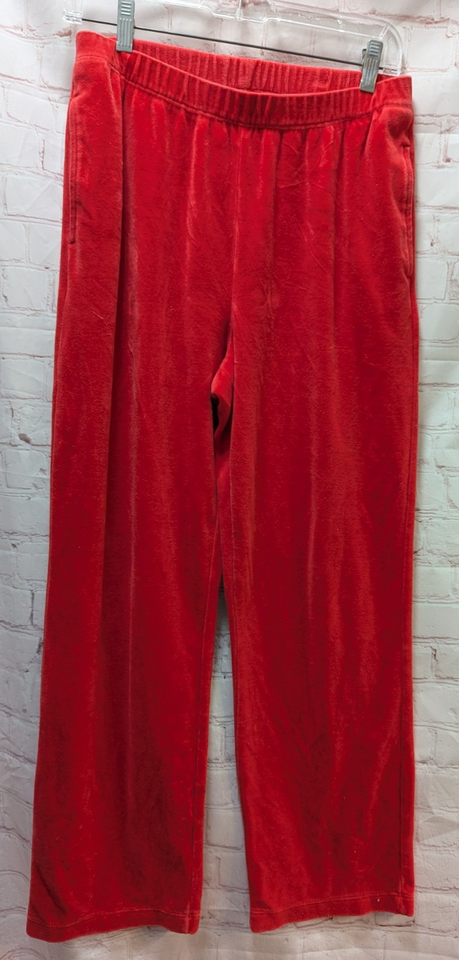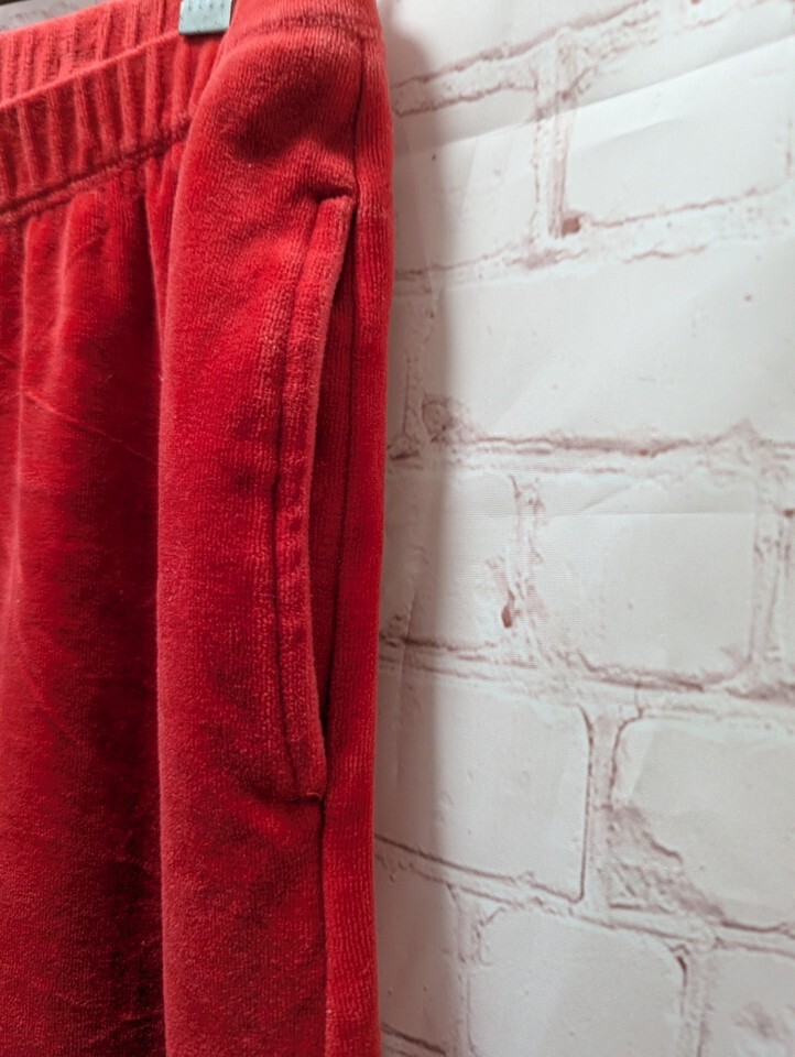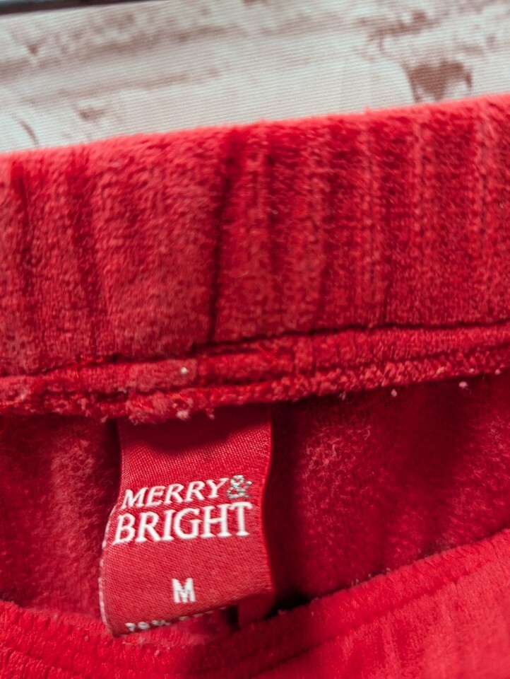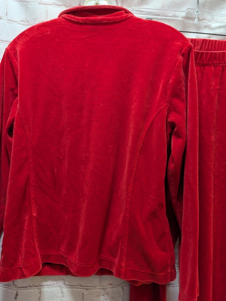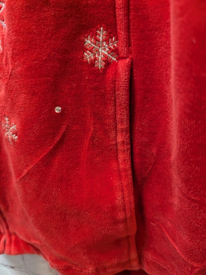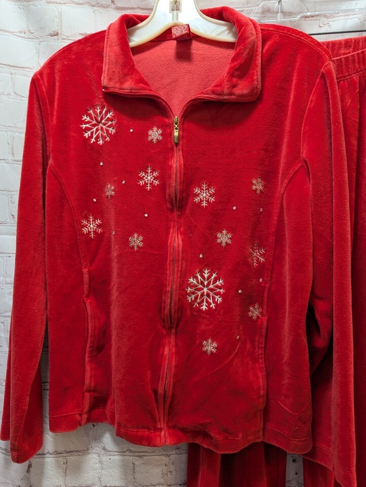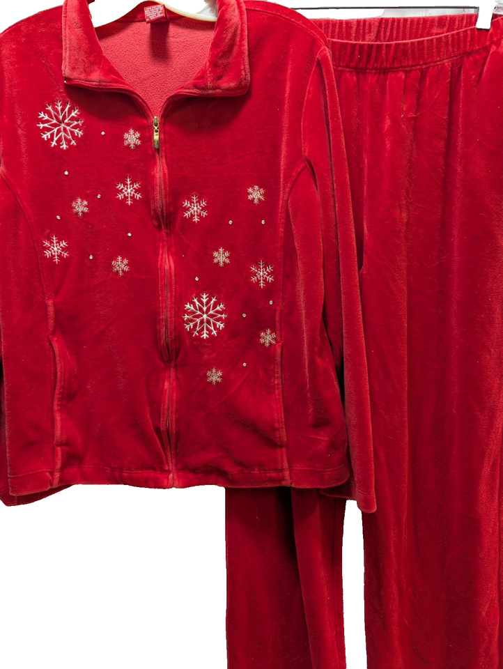 Merry Bright women M red velour Christmas snowflake track suit zip jacket pants