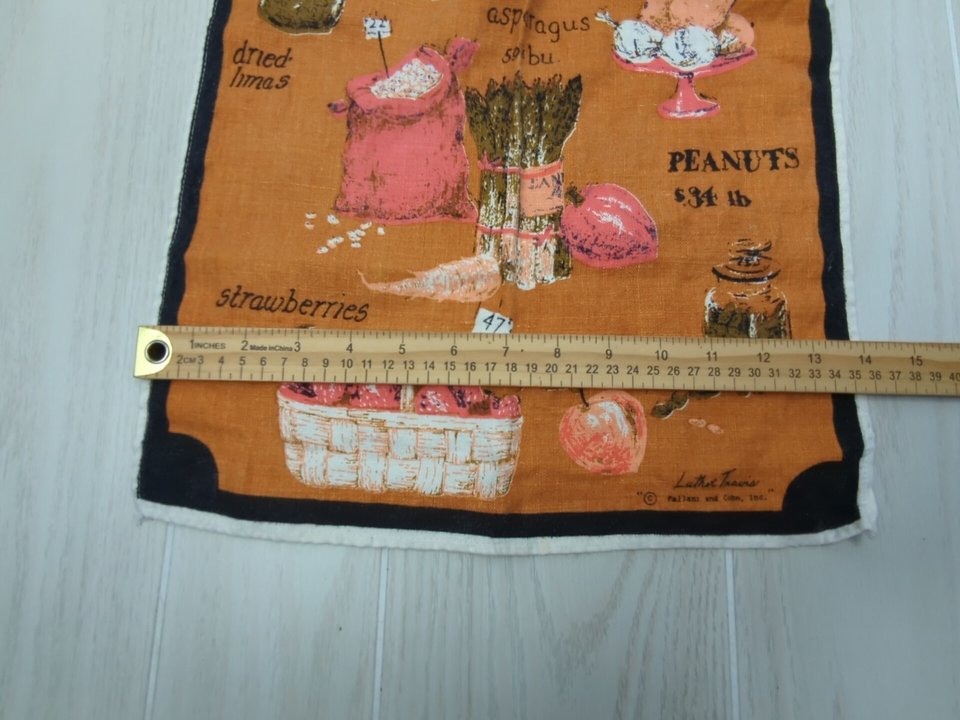 Linen tea towel Fruits and Vegetables vintage Luther Travis berries melon peanut
