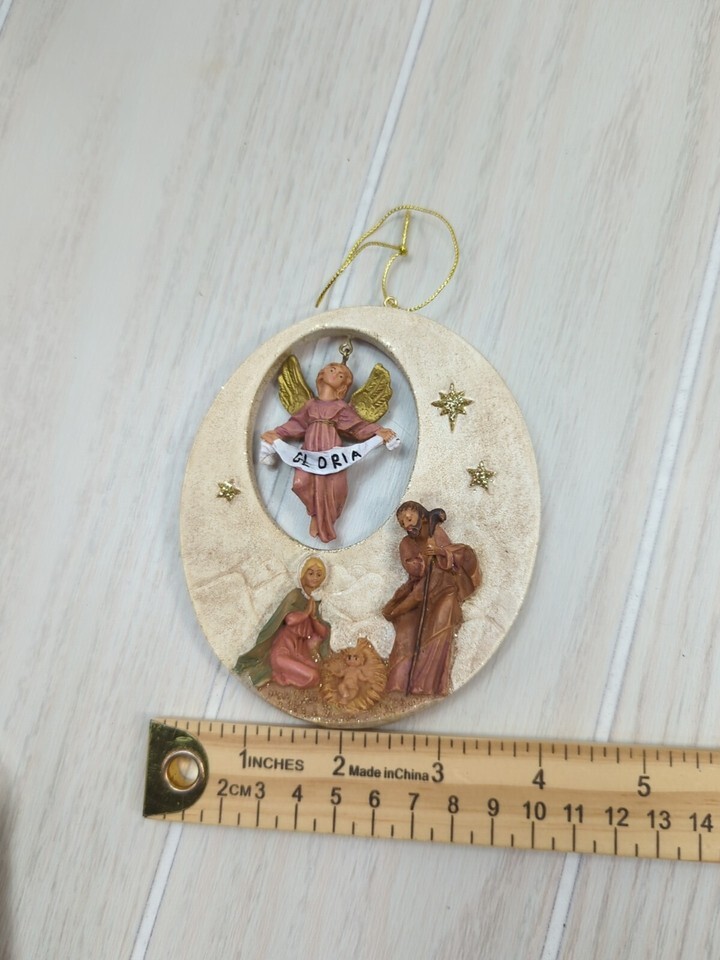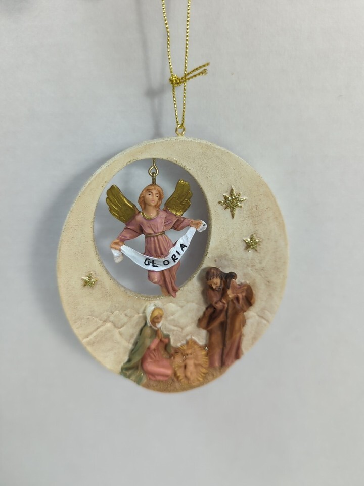 Fontanini by Roman Holy Family Nativity Oval Christmas ornament Gloria angel