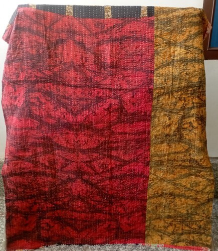 There are some small spots, the binding is frayed, and there are loose threads thoughout (the threads that make the quilted pattern.)