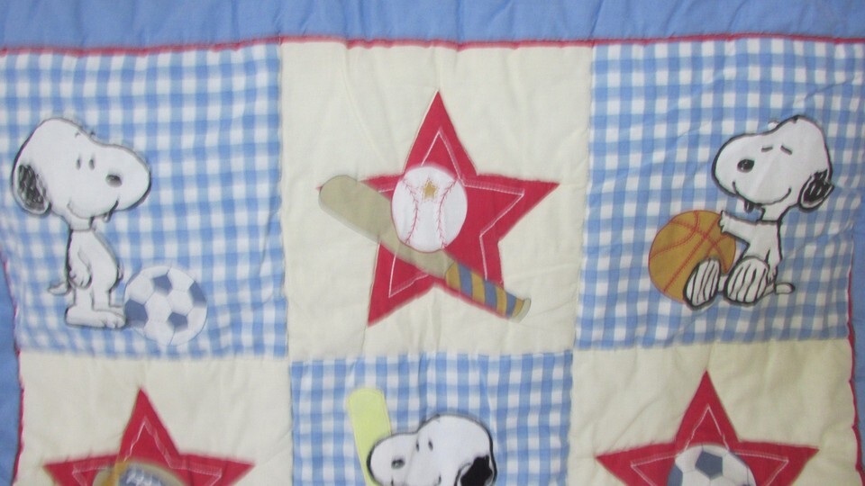 Snoopy Peanuts sports baby crib blanket quilt Lambs & Ivy Woodstock Little Champ