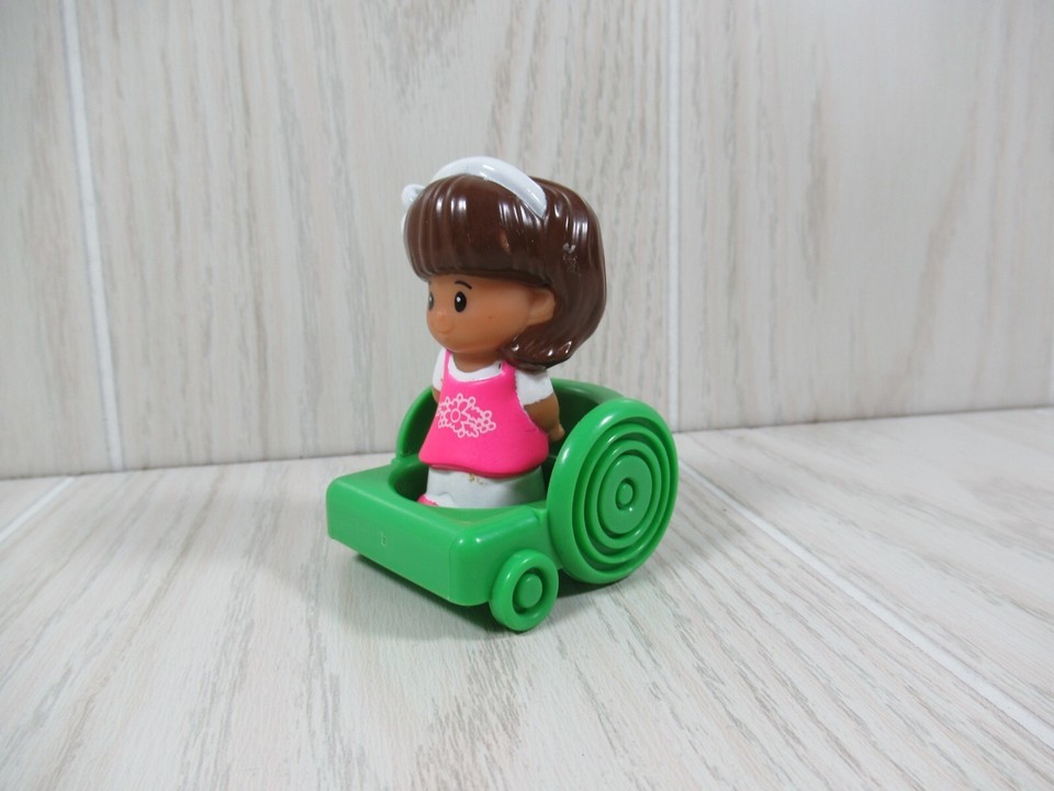 Fisher Price Little People girl brown hair pink dress green wheelchair Mia