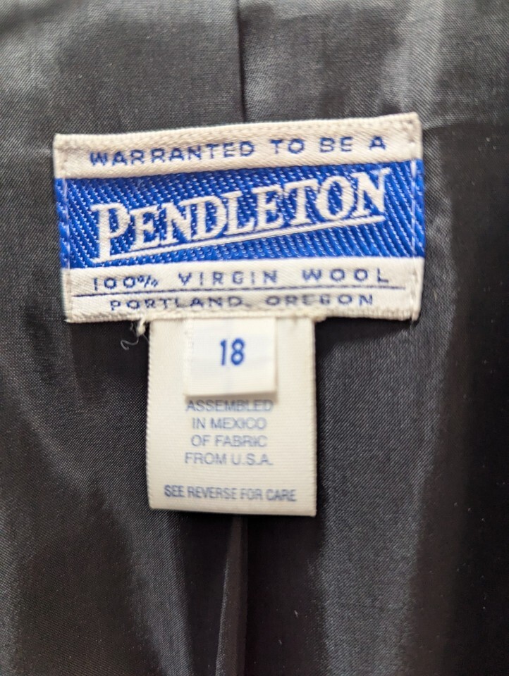 Pendleton Women's 18 Black White Yellow Plaid Blazer Virgin Wool Vintage