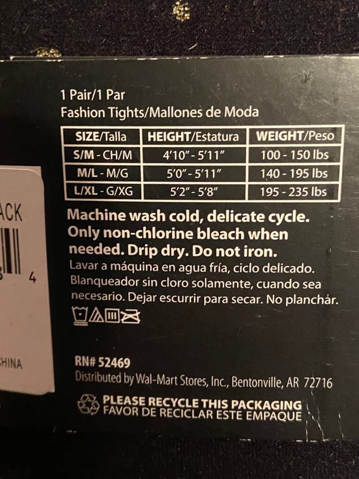 The black tights are new in the package.