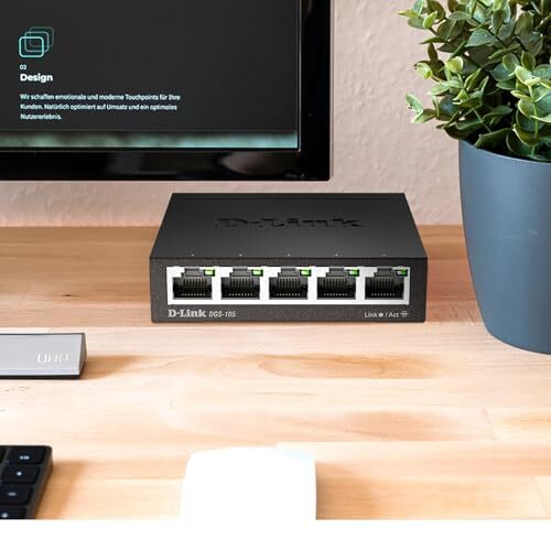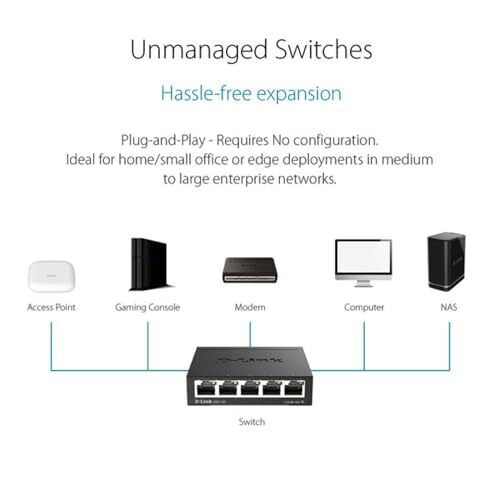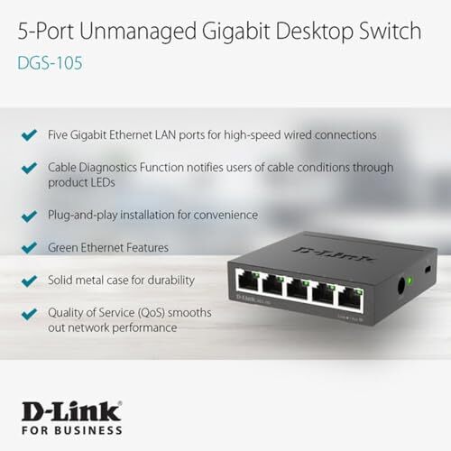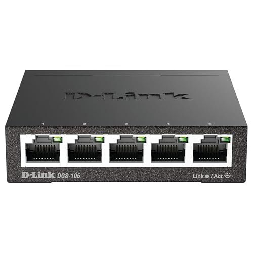 D-Link Ethernet Switch, 5 Port Gigabit Unmanaged Metal Desktop Plug and Play Com