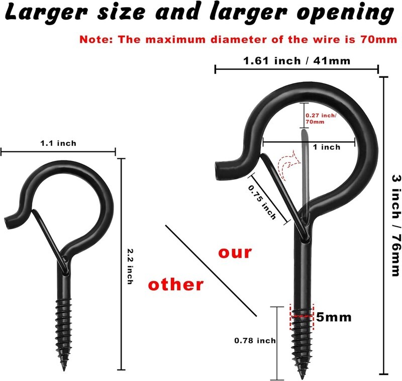 Large Q-hanger - The enlarged size is 3 inches and has a larger opening for easier hanging. Suitable for outdoor lights, patio lights, Christmas lights, plants, bird feeders and houses, flower post, wind chimes, etc.