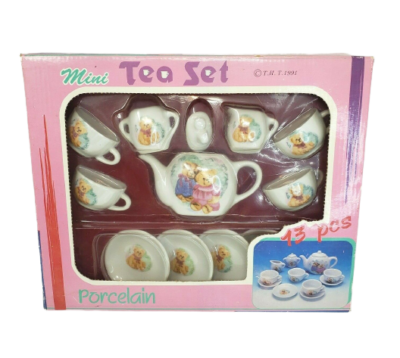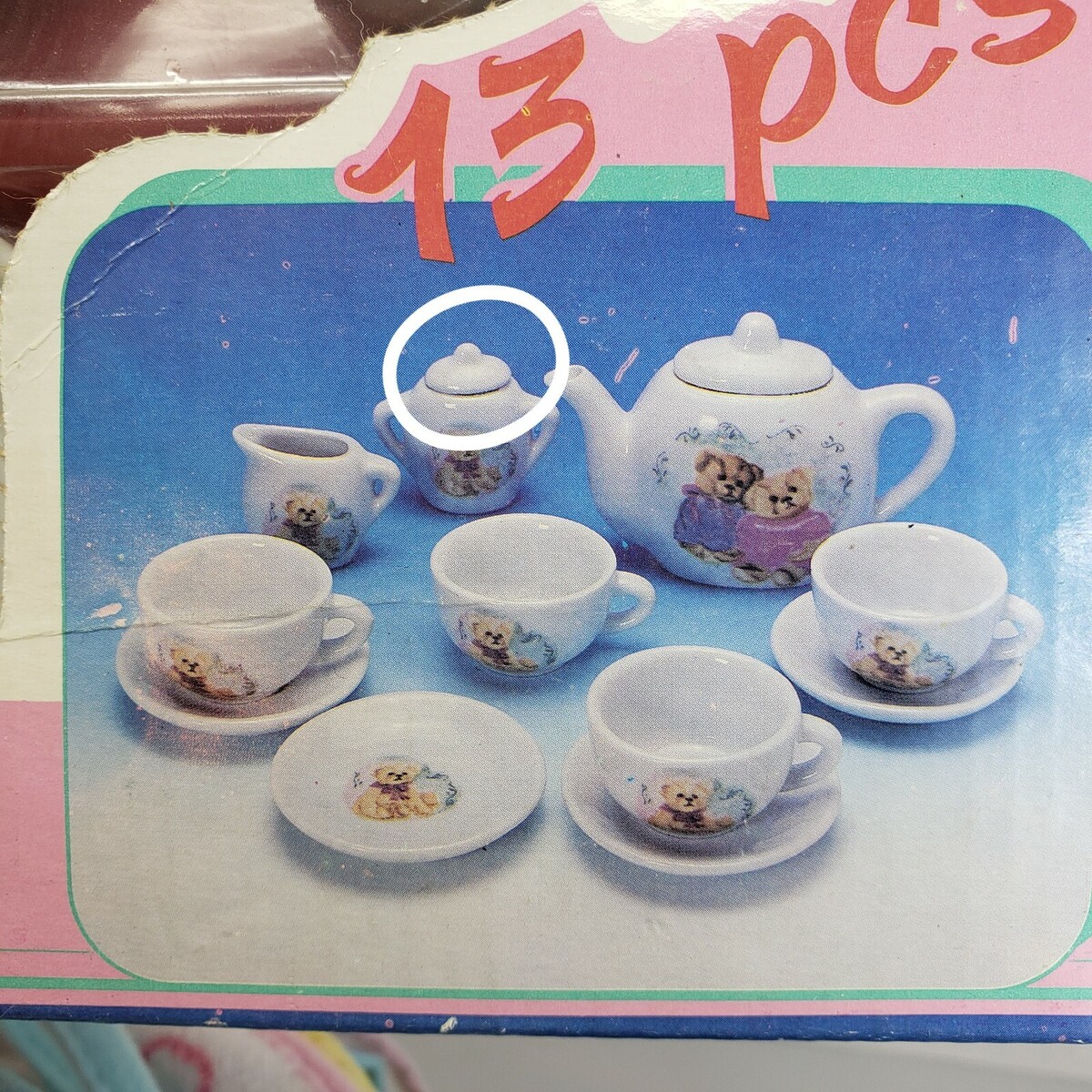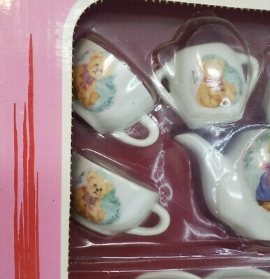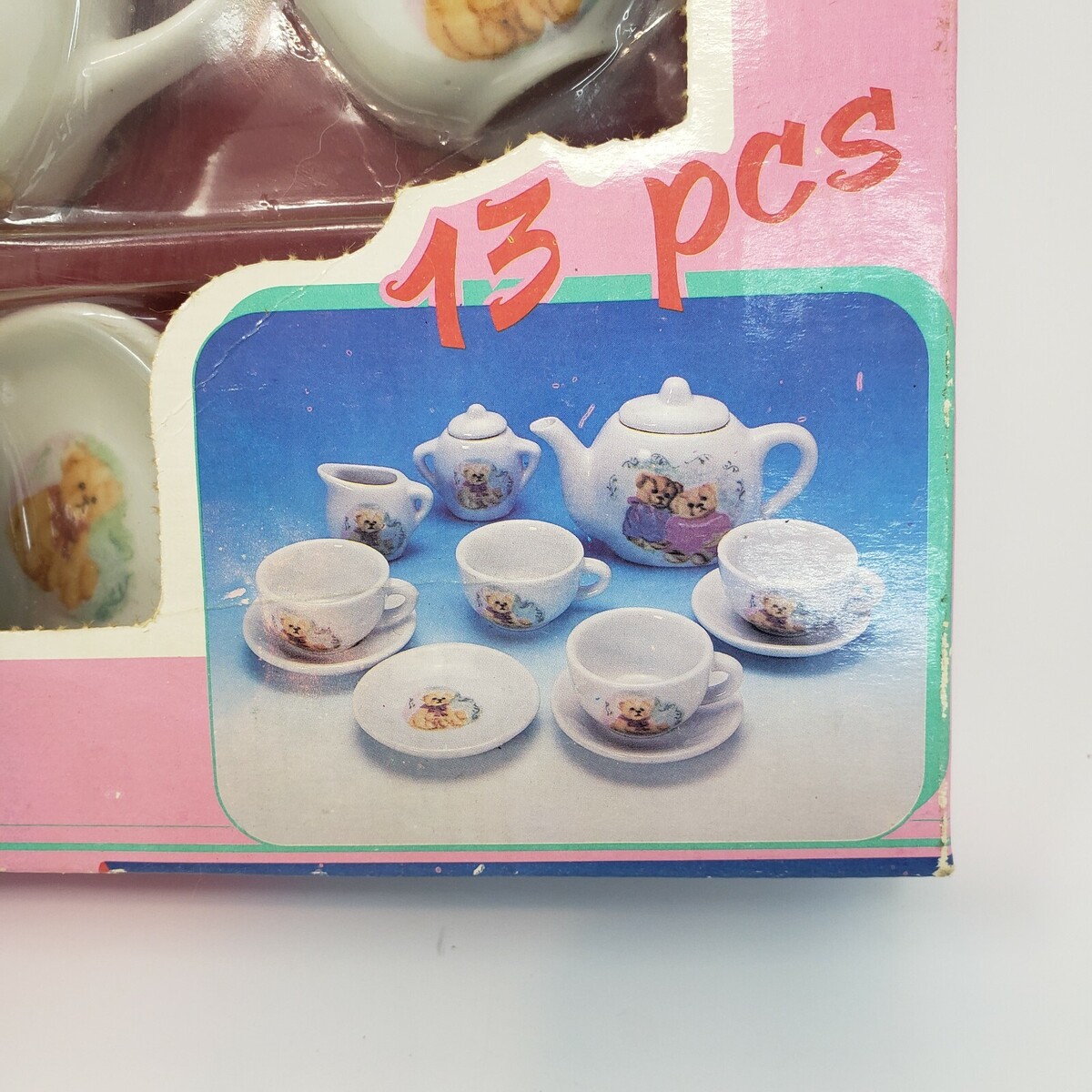 VINTAGE 1991 MINI PORCELAIN TEA DRINK SET TEDDY BEARS 12 PIECES CUPS SAUCERS
