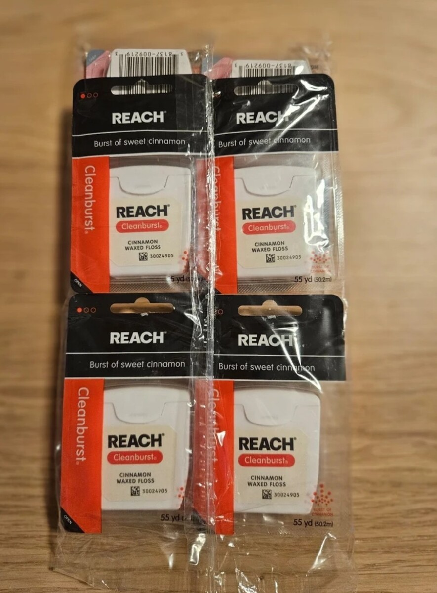 Johnson Johnson J J Reach Cleanburst Cinnamon Waxed Floss, lot of 6-pack, 55 yards each