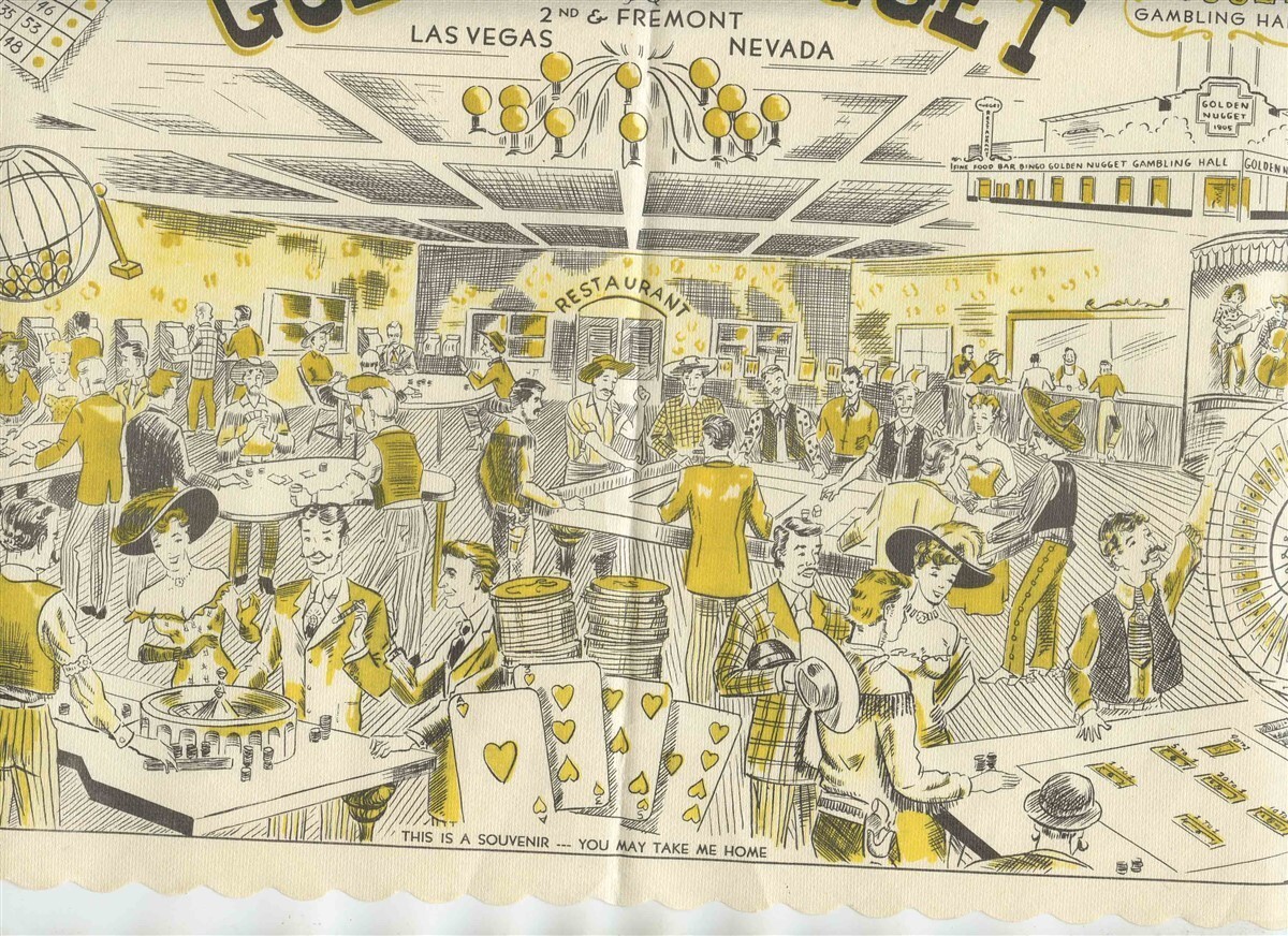 A paper souvenir placemat. Golden Nugget Gambling Hall Placemat 2nd Fremont Las Vegas Nevada