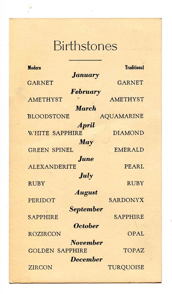 An oversized M A Reich Business Card Hand Wrought Gold Rings Buffalo NY . Has monthly Birthstones on the back