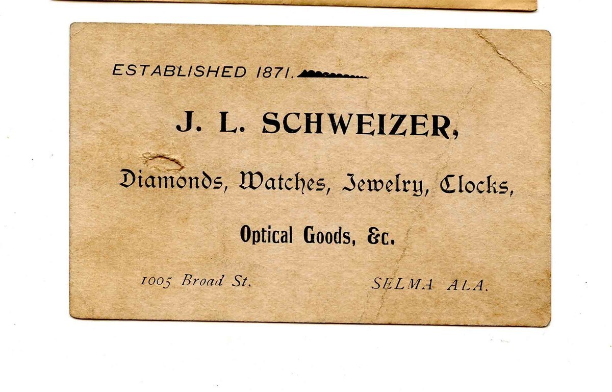 J L Schweizer The Jeweler Selma Alabama Business Card & Envelopes 1901