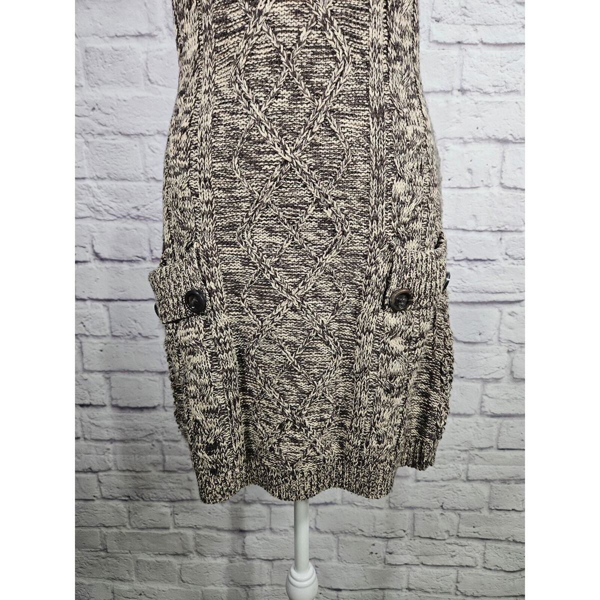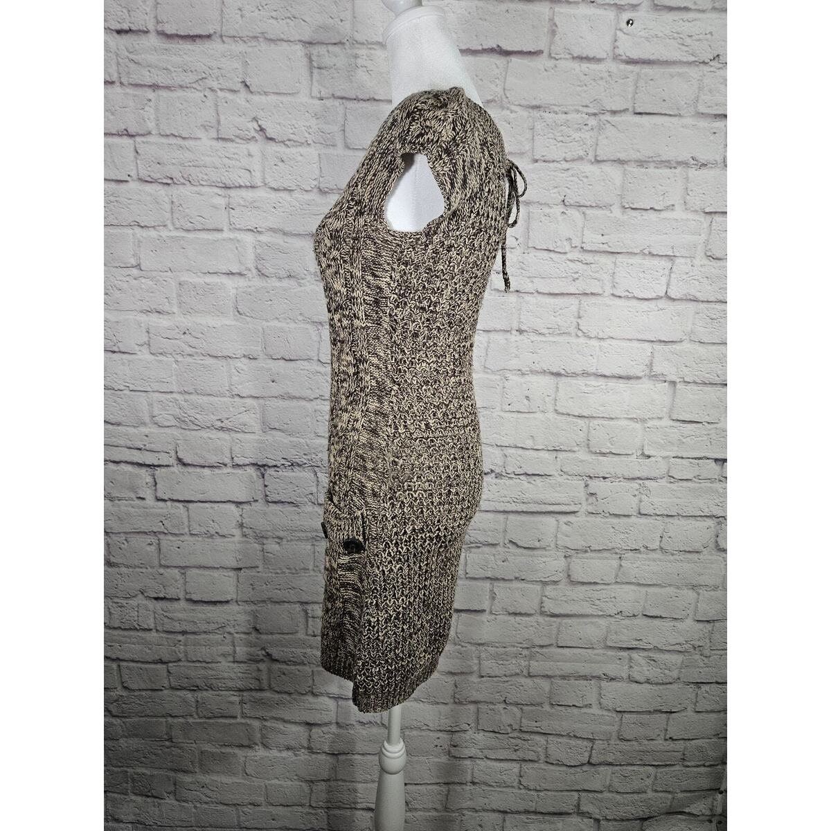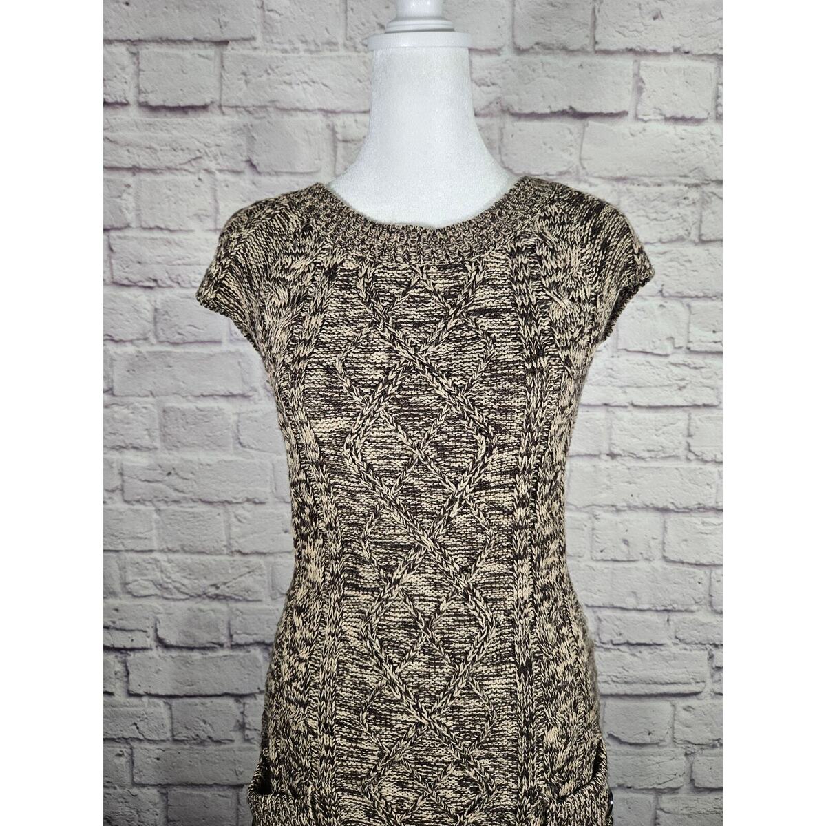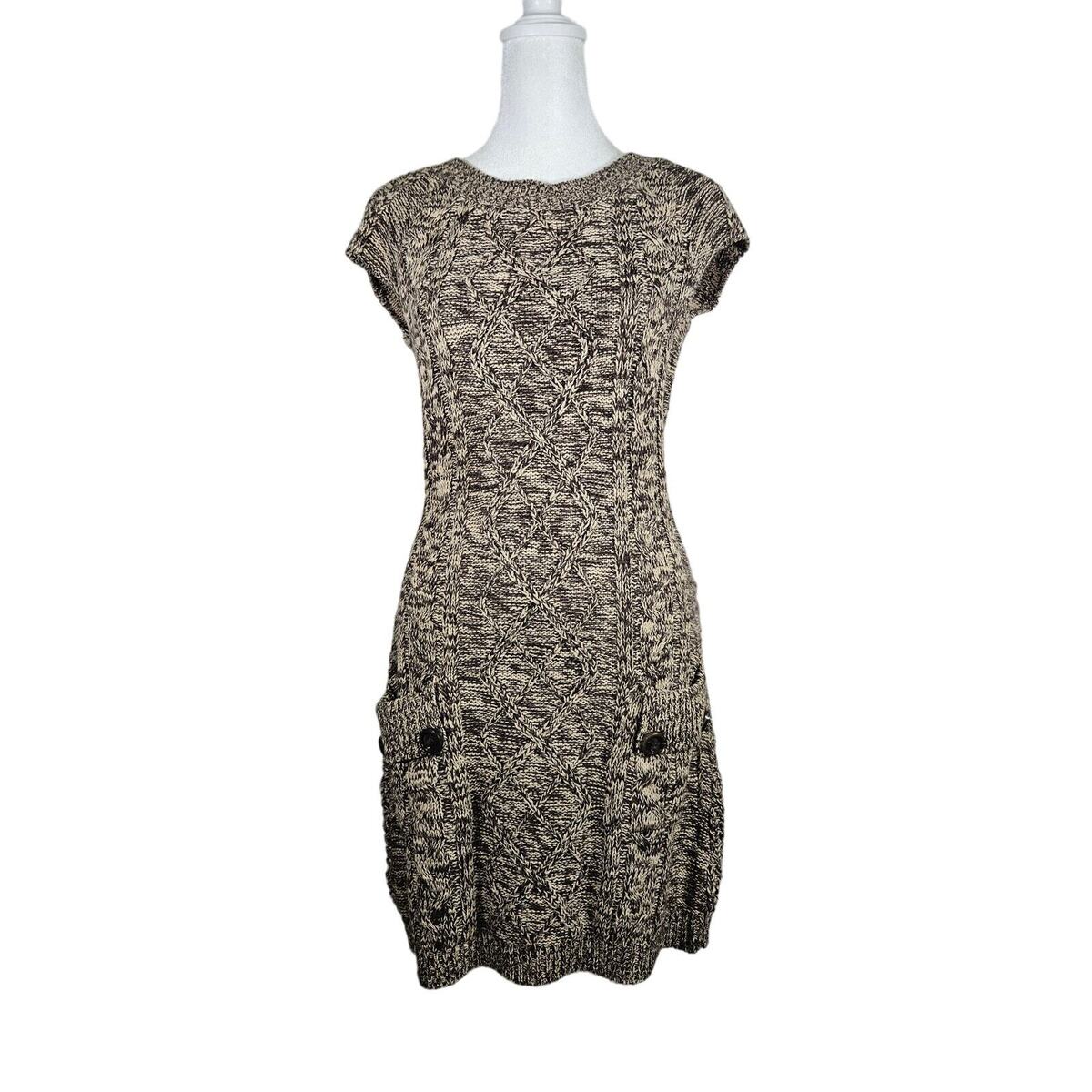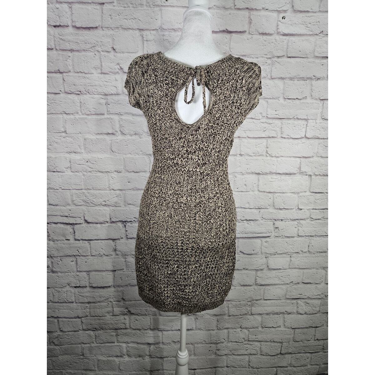 JJ Basics Women's Sweater Dress Brown Short Sleeve Back Cut Out Small Buttons