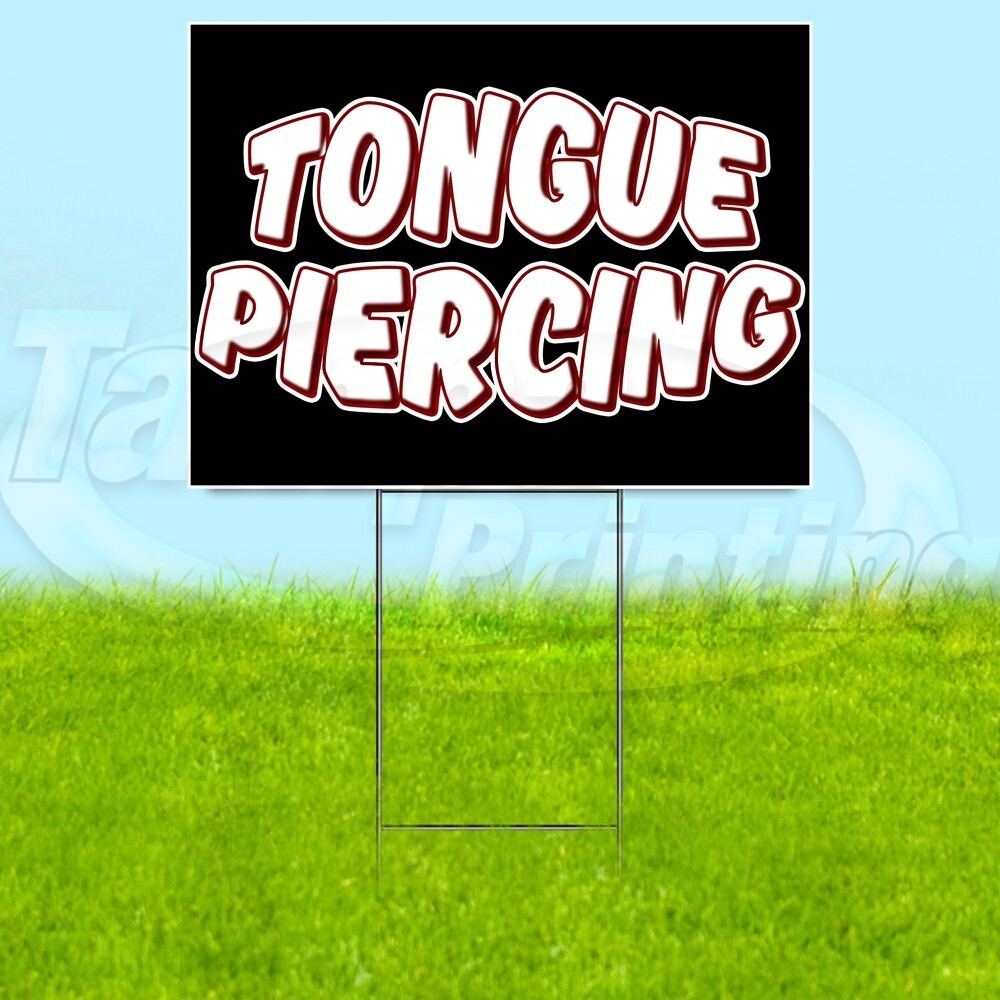 TONGUE PIERCING 18x24 Yard Sign Tattoo Plastic Corrugated WITH STAKE USA YS07831