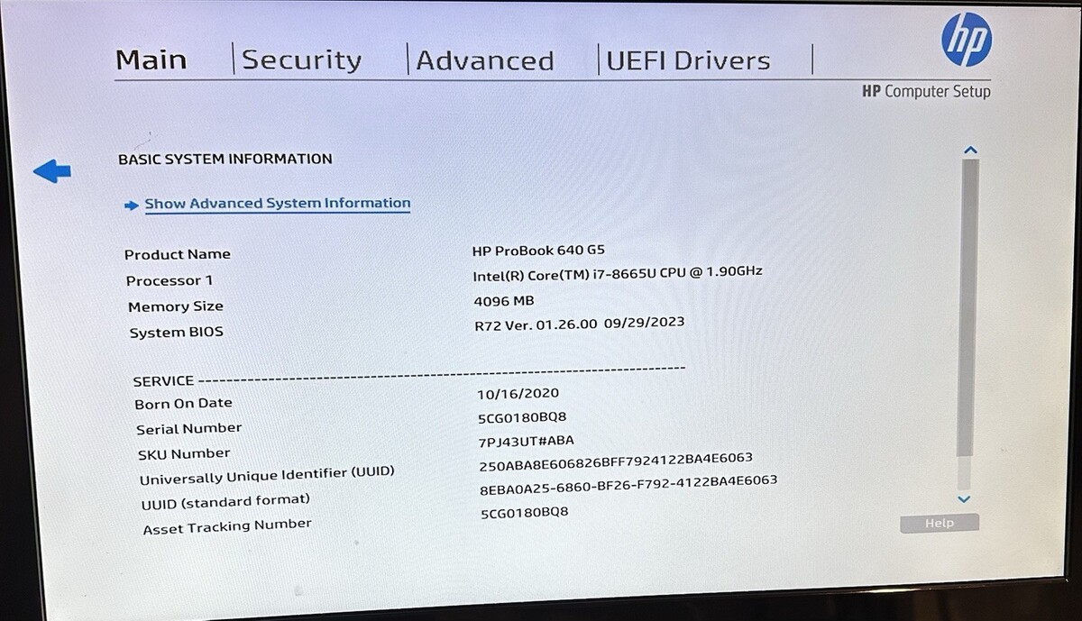 HP ProBook 640 G5 Motherboard Intel Core i7-8665U 1.90GHz L58710-601