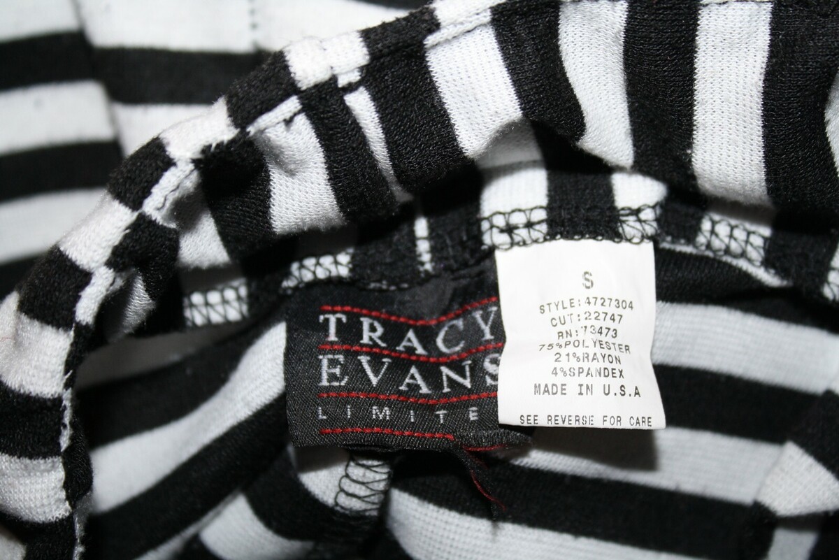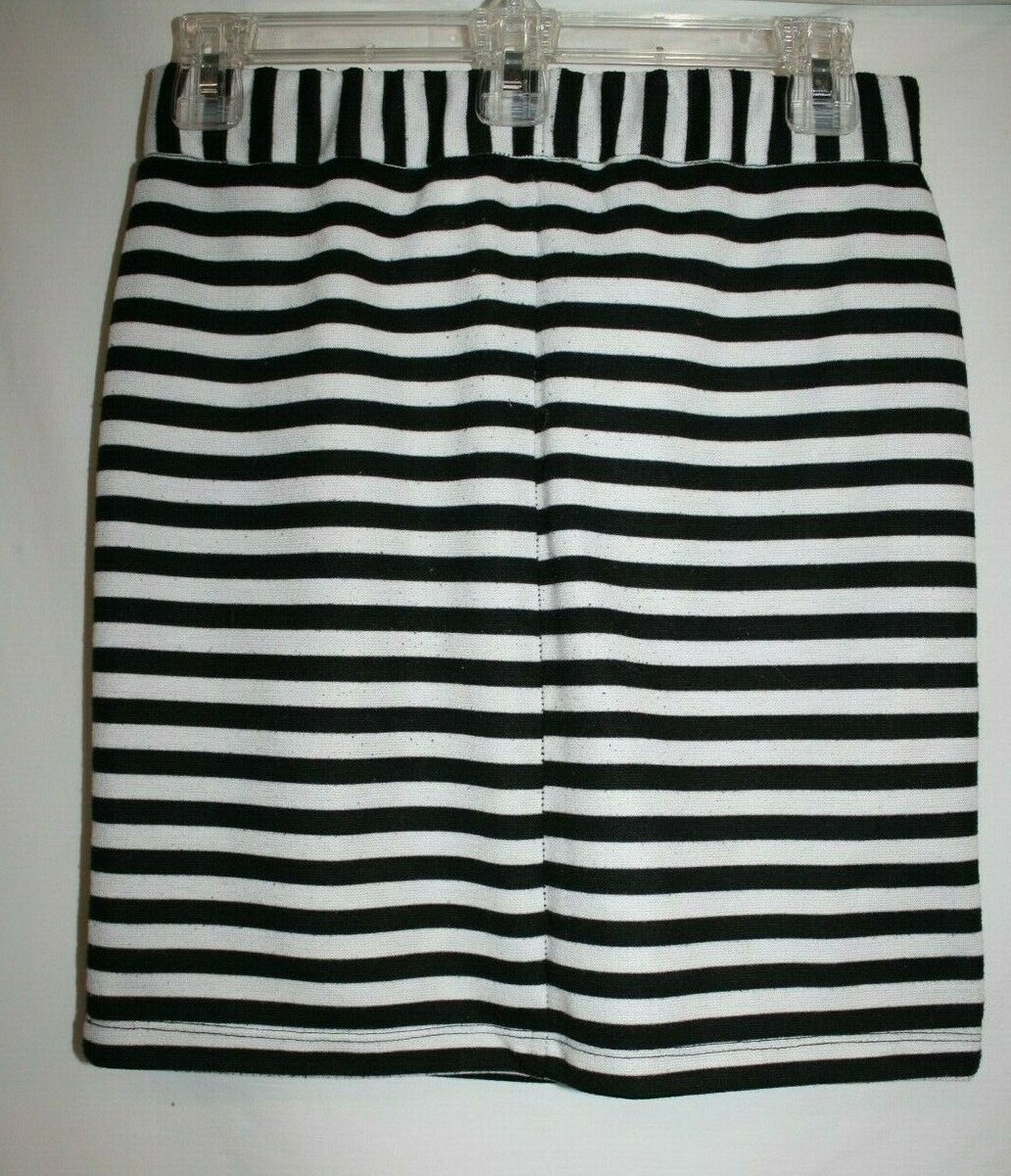 Tracy Evans Limited Junior SMALL Mini Skirt Black White Striped Elastic Waist