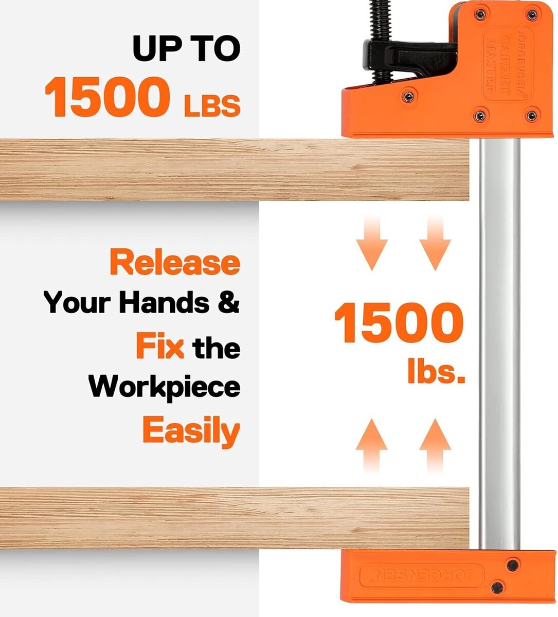 18? Bar Clamp Set, 2-pack 90 Parallel Clamp Cabinet Master, Steel Jaw Bar Clamp for Woodworking, 1500 lbs load
