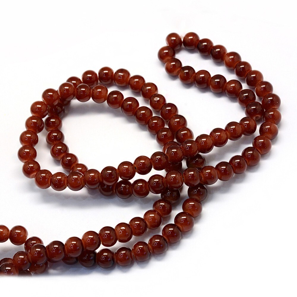 A Bead Lot of 5 strands faux jade 6mm round Saddle Brown color 31 inch long BP3