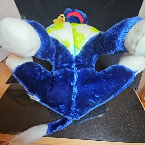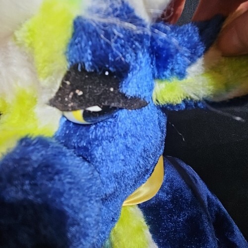 Chest, ears and head/nose have blue/green and white tie dye pattern plush