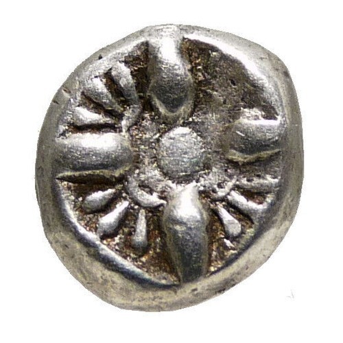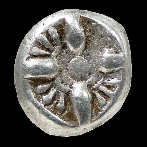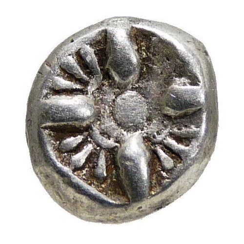Reverse: Stellate floral star pattern around a central globe/pellet; within incuse square.