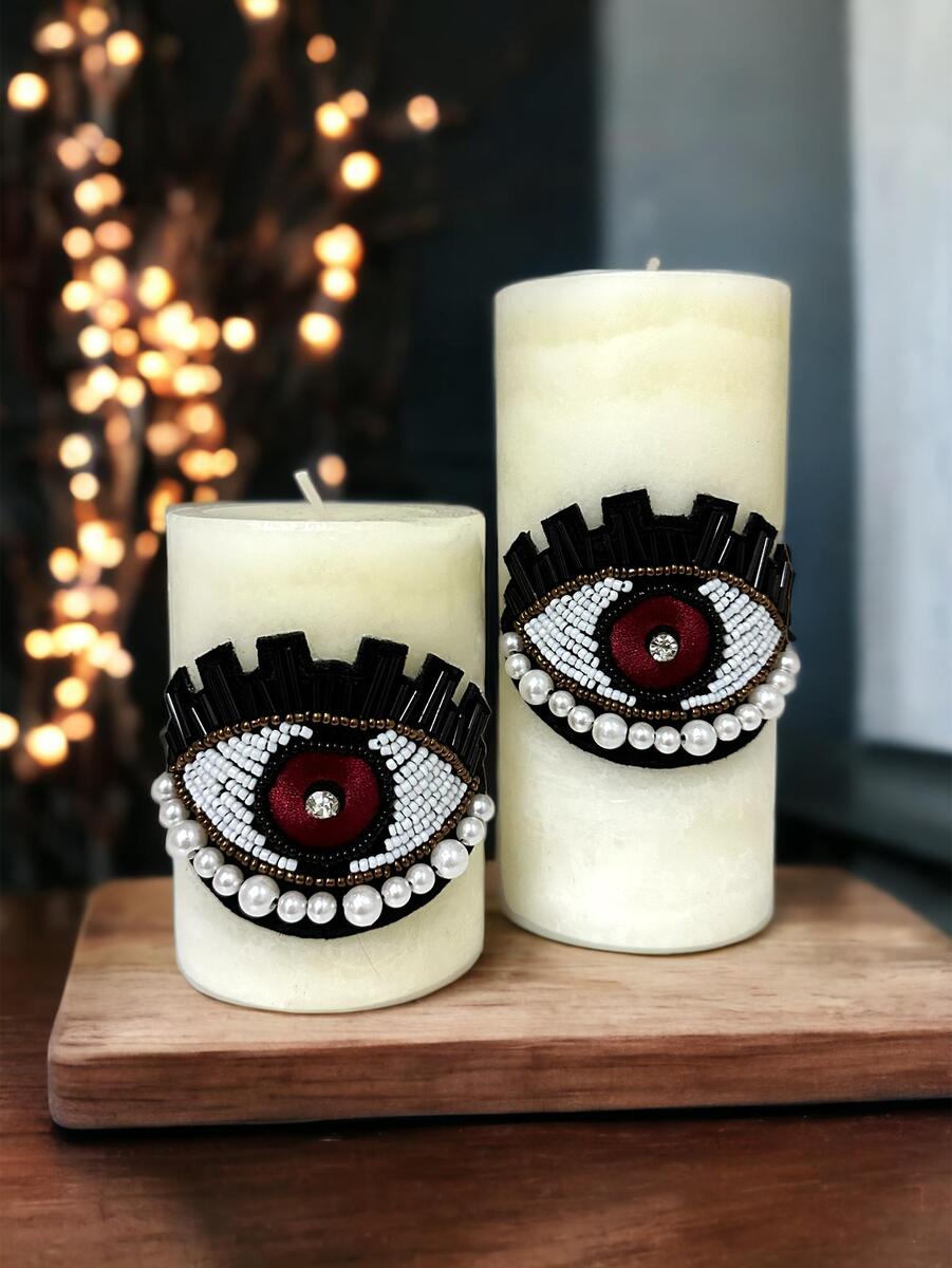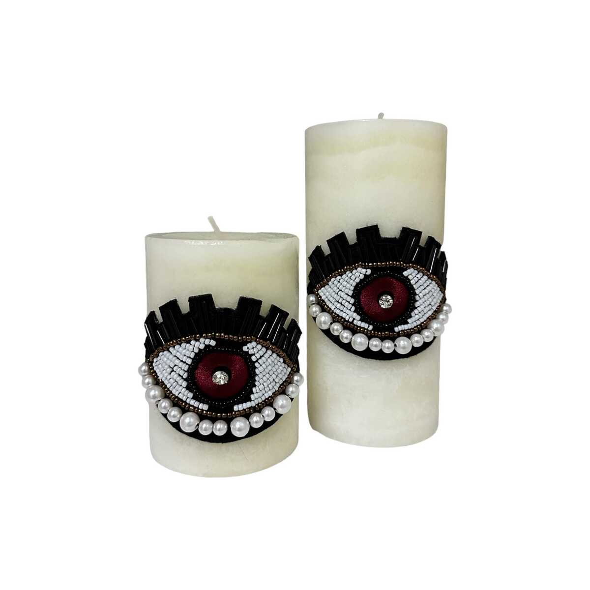 Evil Eye Candles Set, Pearl Accents, Coconut Blossom Scent