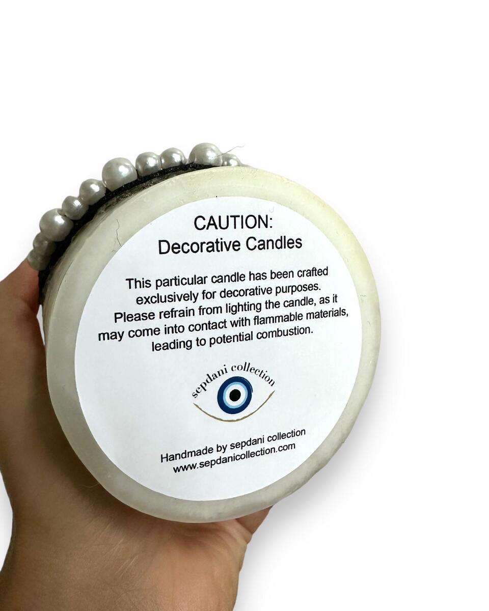 This particular candle has been crafted exclusively for decorative purposes. Please refrain from lighting the candle as it may come into contact with flammable materials, leading to potential combustion.