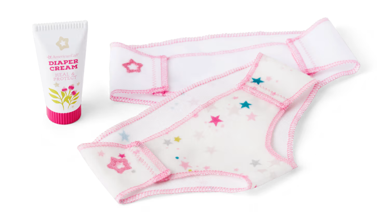 This American Girl Bitty Baby Diaper Set is perfect for all the little ones out there! The set includes a cute diaper cream and is perfect for pretend playtime. The multicolor design features both a playful and fun theme, making it the perfect addition to any doll collection. This gender-neutral set is sure to delight any child and bring hours of entertainment.