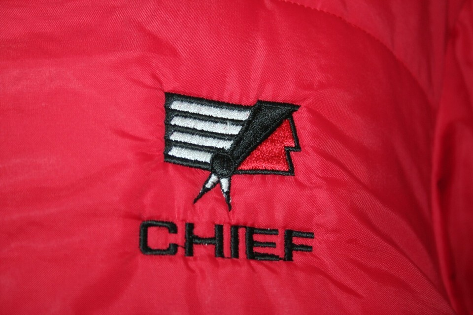 Vintage 80s CHIEF AUTOMOTIVE TECHNOLOGIES Red Insulated JACKET L Auto Car Repair