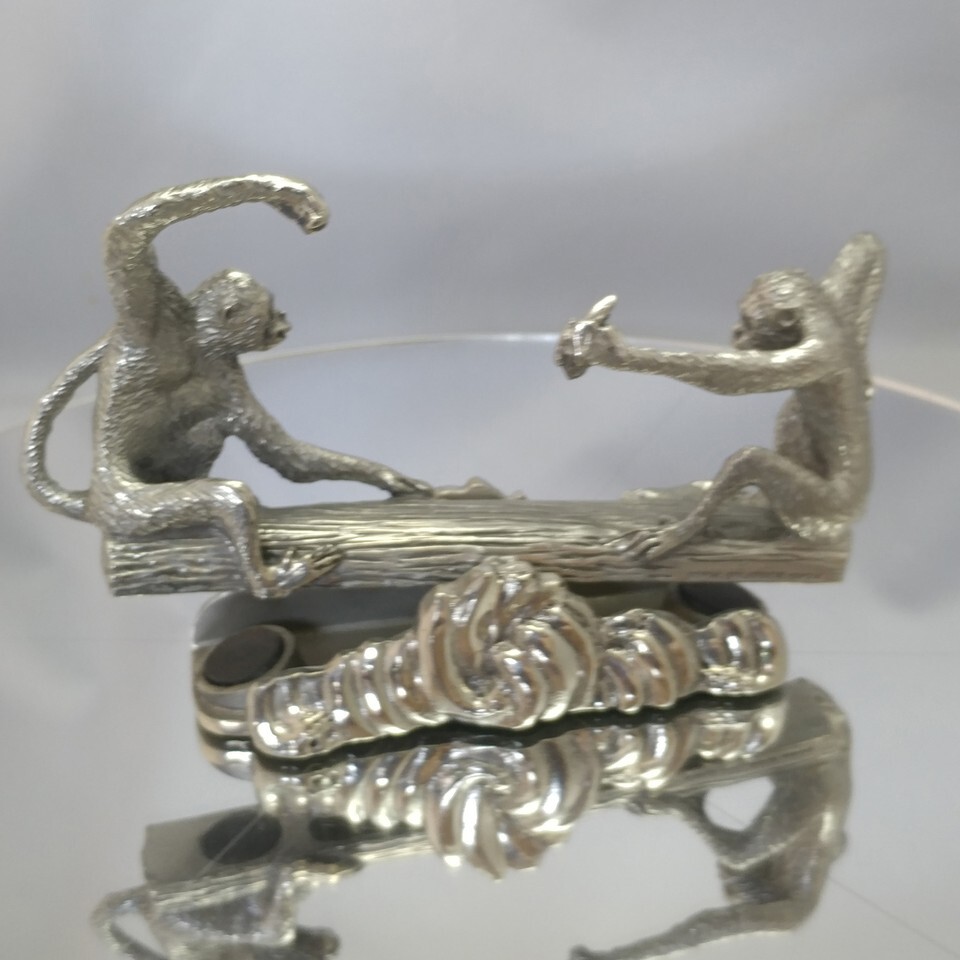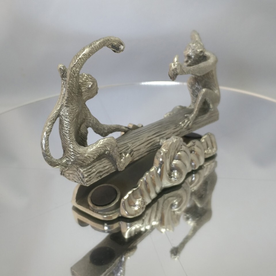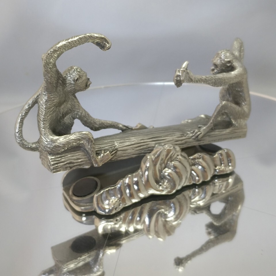 Royal Selangor Pewter Monkeys Seesaw Desk Toy. Incorporating magnets so that it remains perfectly level. Could be used for Menu or Business Cards. Measures approximately 14cm/5.5" in length and 8cm tall. Fantastic quality and detail in the casting as expected from Royal Selangor. Condition is Used but excellent.