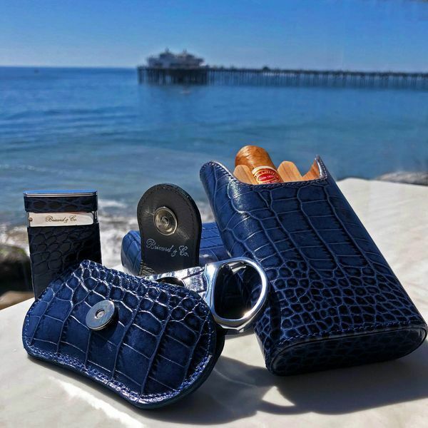 Brizard and Co The "Show Band" 3 Cigar Case , Cutter and Lighter Combo- Indigo Croco Pattern-NIB-Made in USA