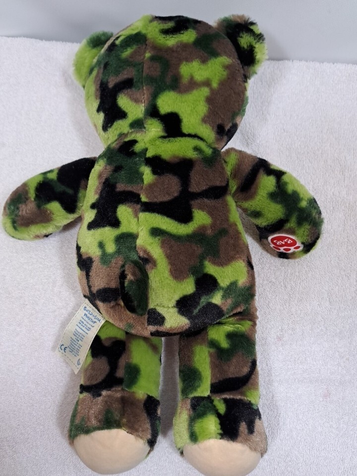 This 18-inch plush toy is a perfect addition to any collection. It features a green camouflage design, with a Build-a-Bear Workshop franchise theme. The bear is made of high-quality plush material, and it comes without packaging. The item is a single unit, and it was manufactured in China in 2014.