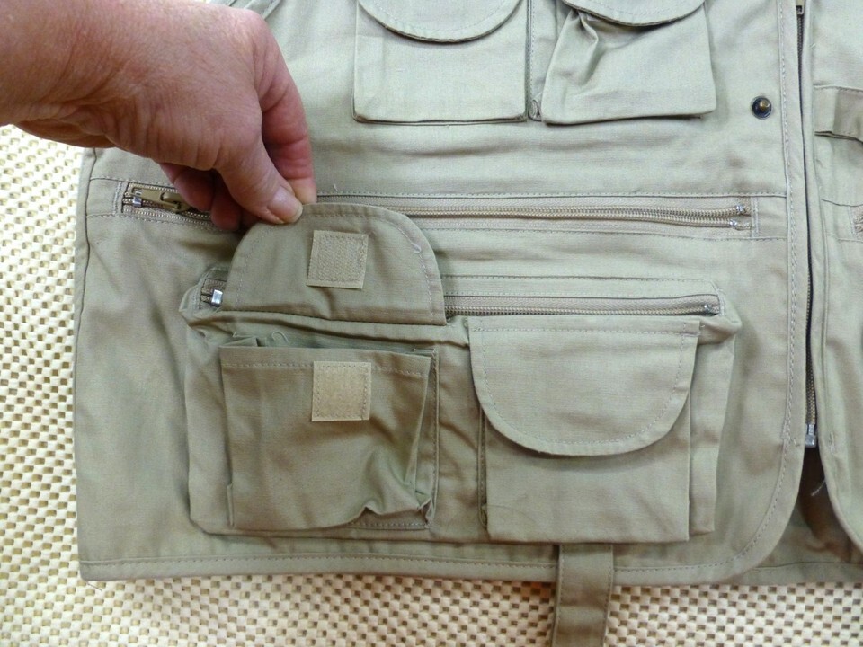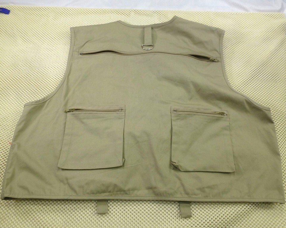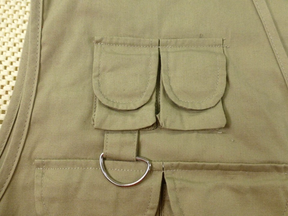 Crystal River XL Khaki Cotton Fishing Vest With Pockets & D-Rings Machine Washab