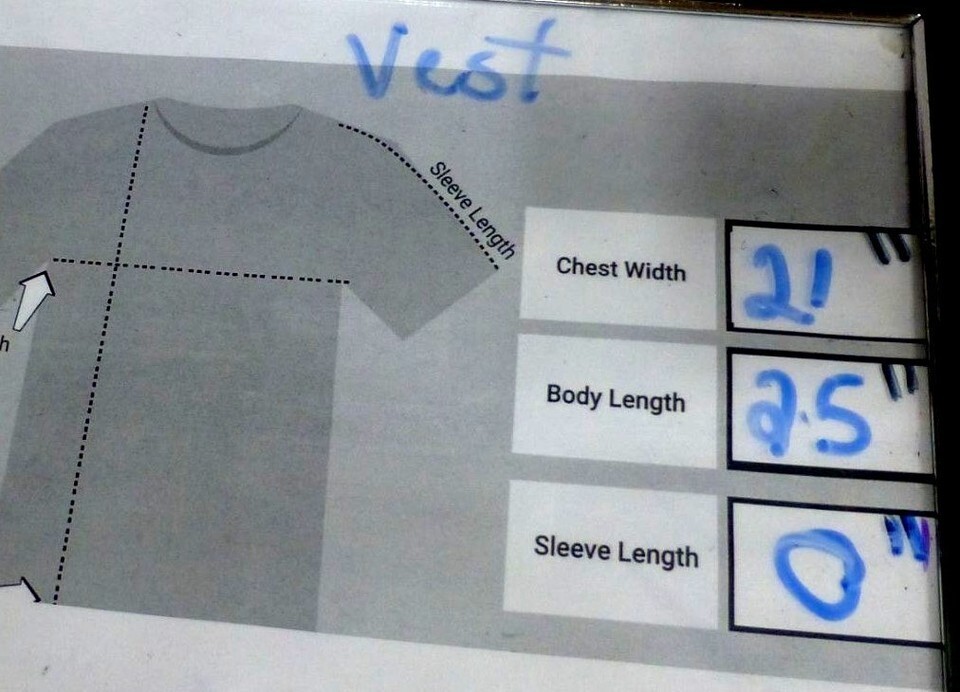 Chest width = 21", body length = 25"