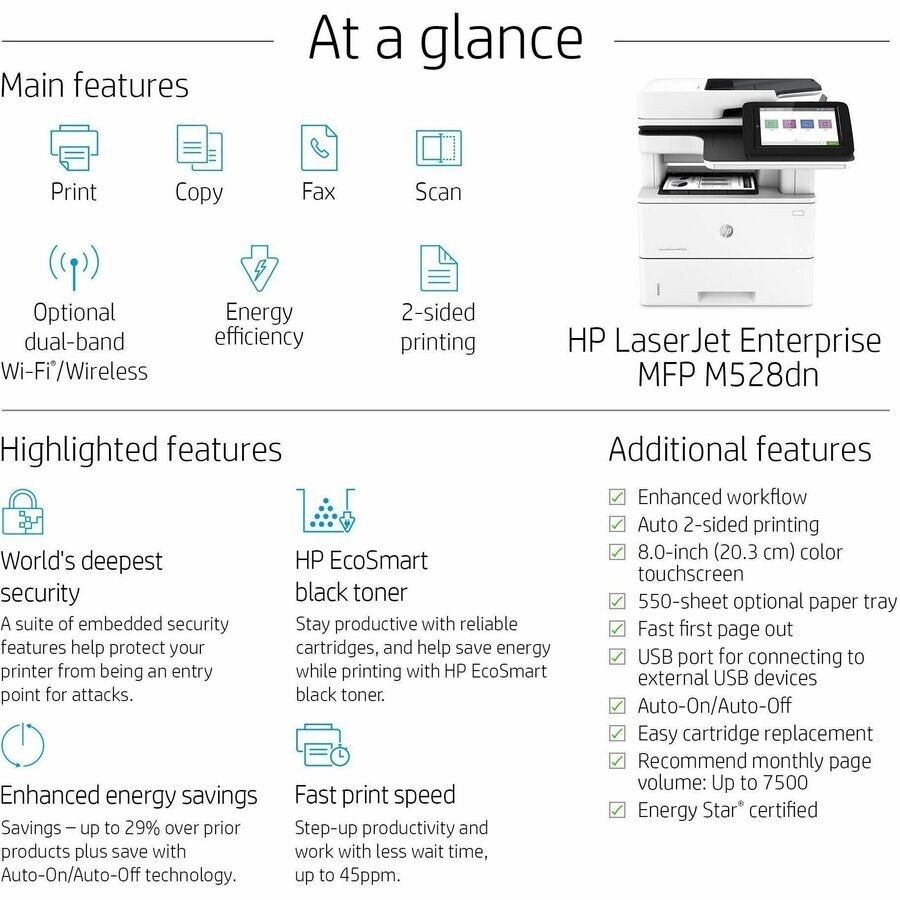 1PV64A HP LaserJet Enterprise MFP M528dn All-In-One Printer Print Copy Scan Fax