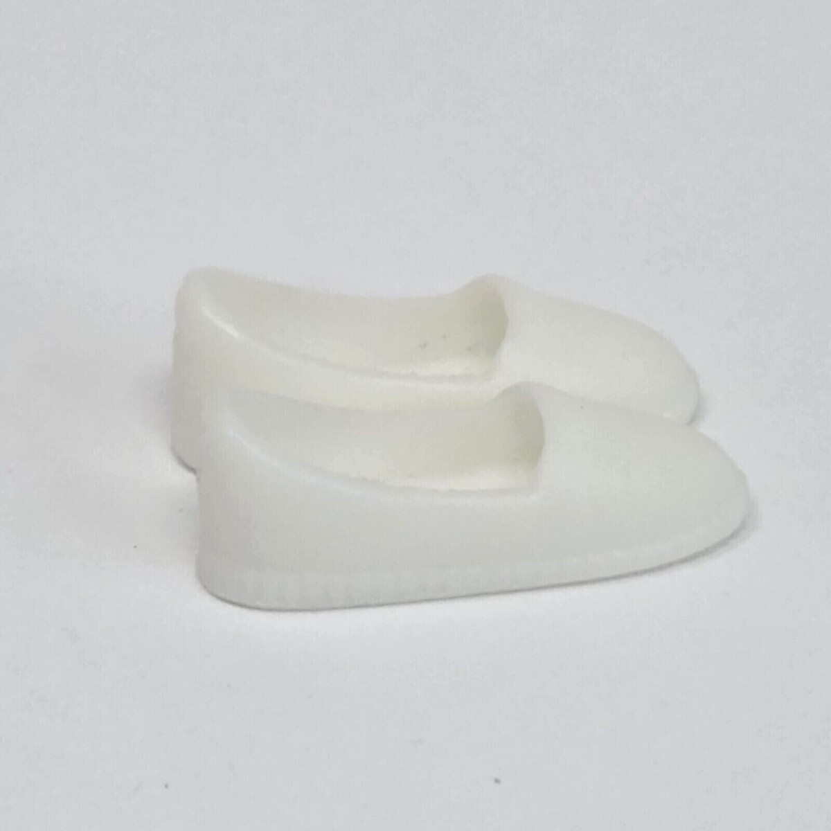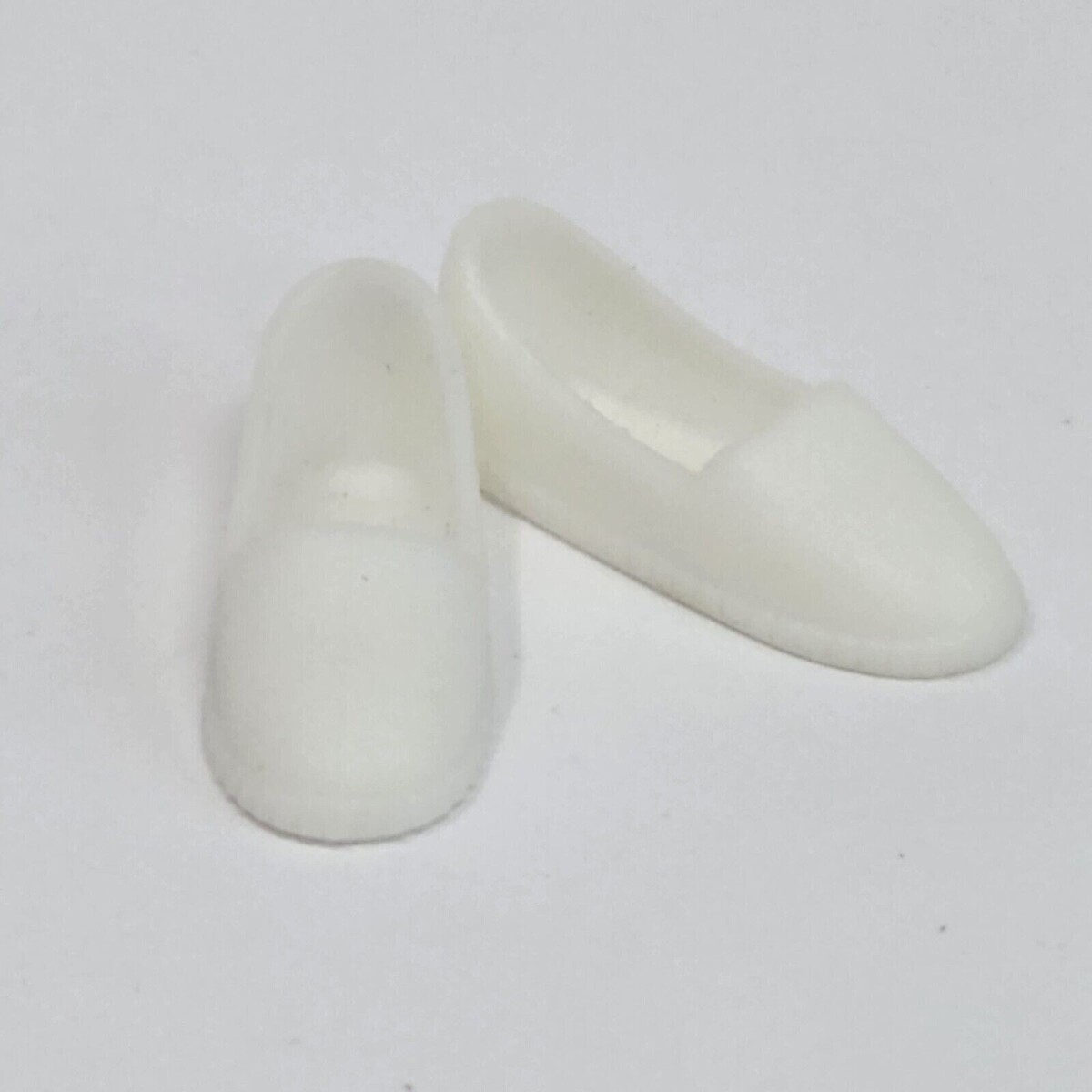VINTAGE 1990's MATTEL BARBIE / SKIPPER WHITE FLAT SLIP-ON PLASTIC LOAFER SHOES