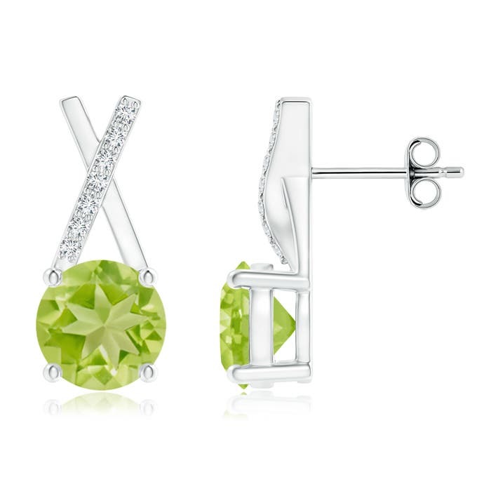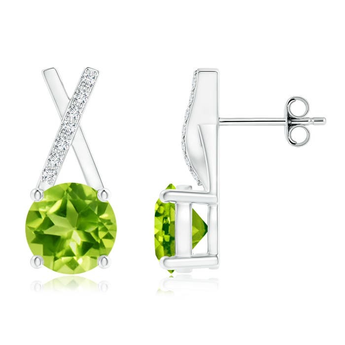 ANGARA Natural Peridot and Diamond XO Stud Earrings in Silver for Women (6mm)