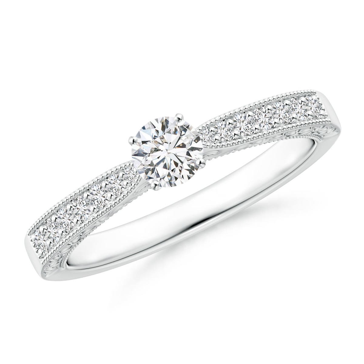 ANGARA 0.34 Ct Diamond Engraved Engagement Ring with Accents in 14K Gold