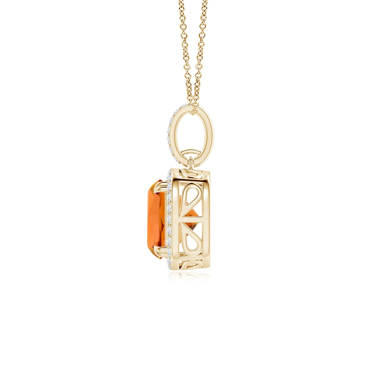ANGARA 2.18 Ctw Cushion Citrine Pendant Necklace with Diamond Halo in 14K Gold