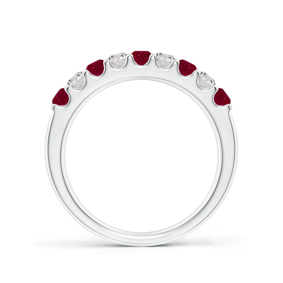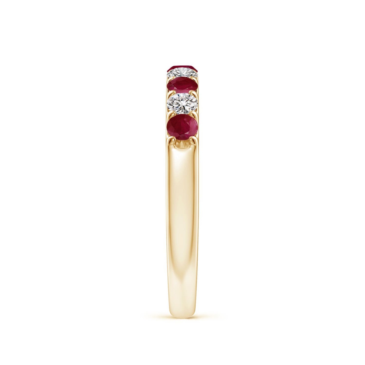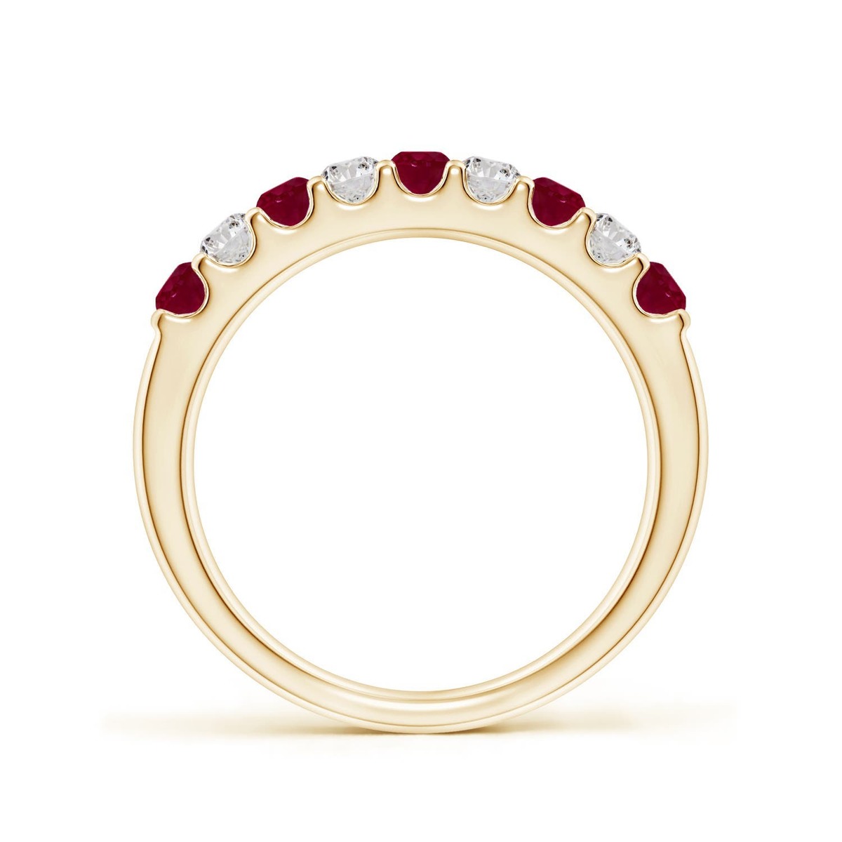 Scarlet red rubies are combined with white diamonds and secured in a shared prong setting. Crafted in 14k solid gold, this classic ruby half eternity band is a luxurious and timeless beauty.This Ruby ring is crafted in Solid Gold ? a stunning choice for lovers of fine Ruby jewelry. Every item comes with an Angara Certificate of Authenticity, which will be sent to you via messages or with the package.