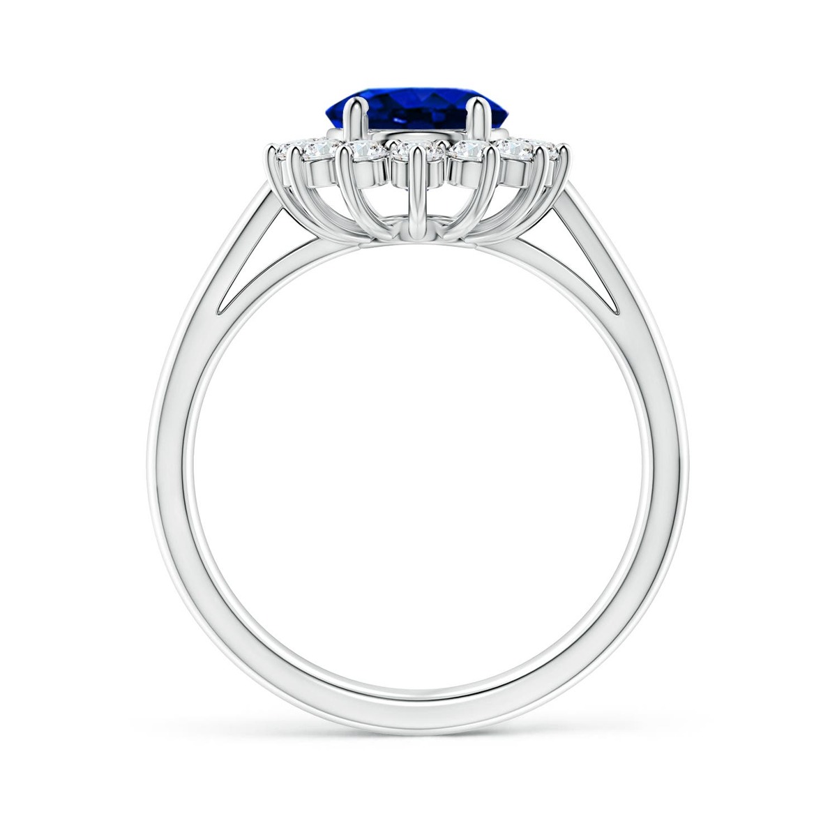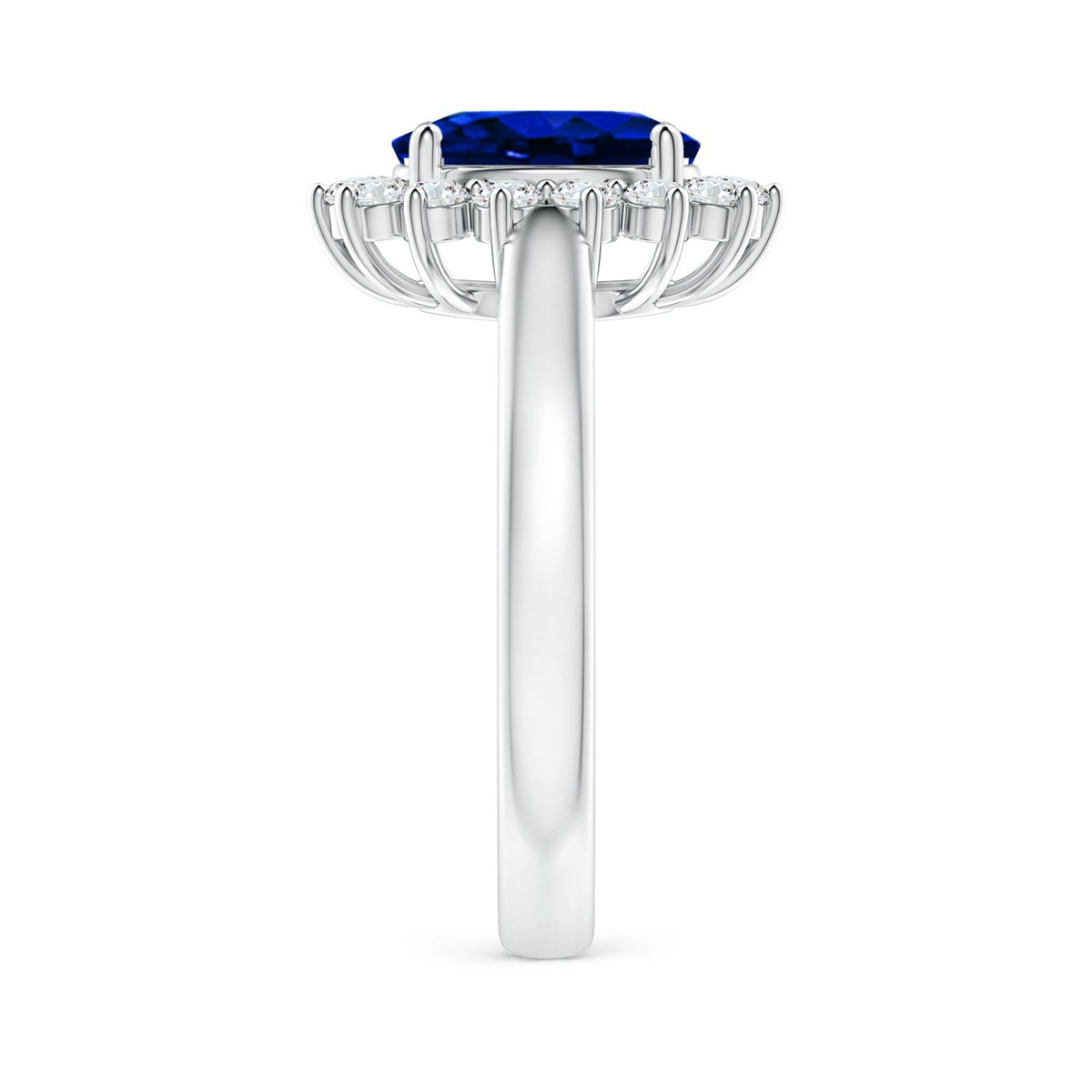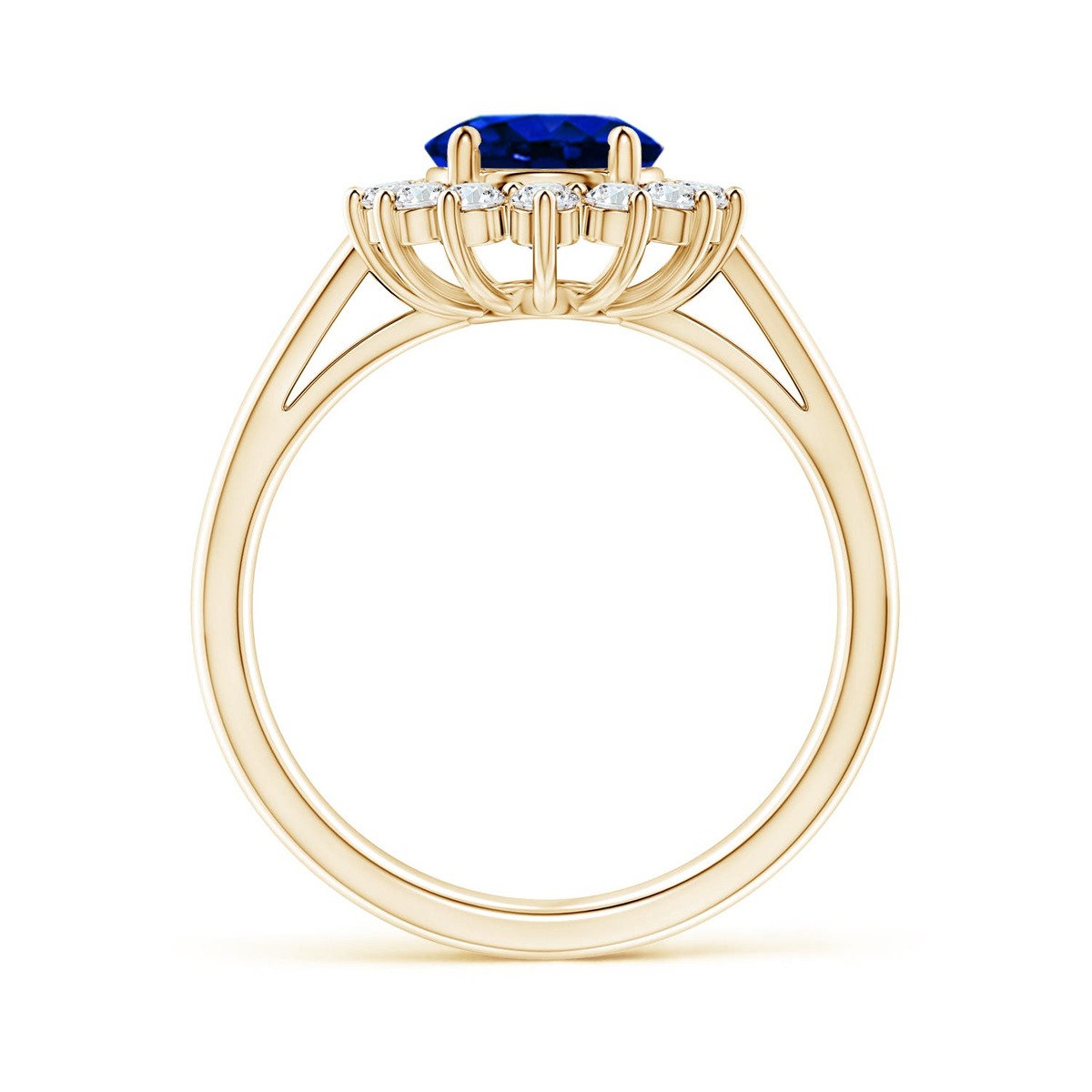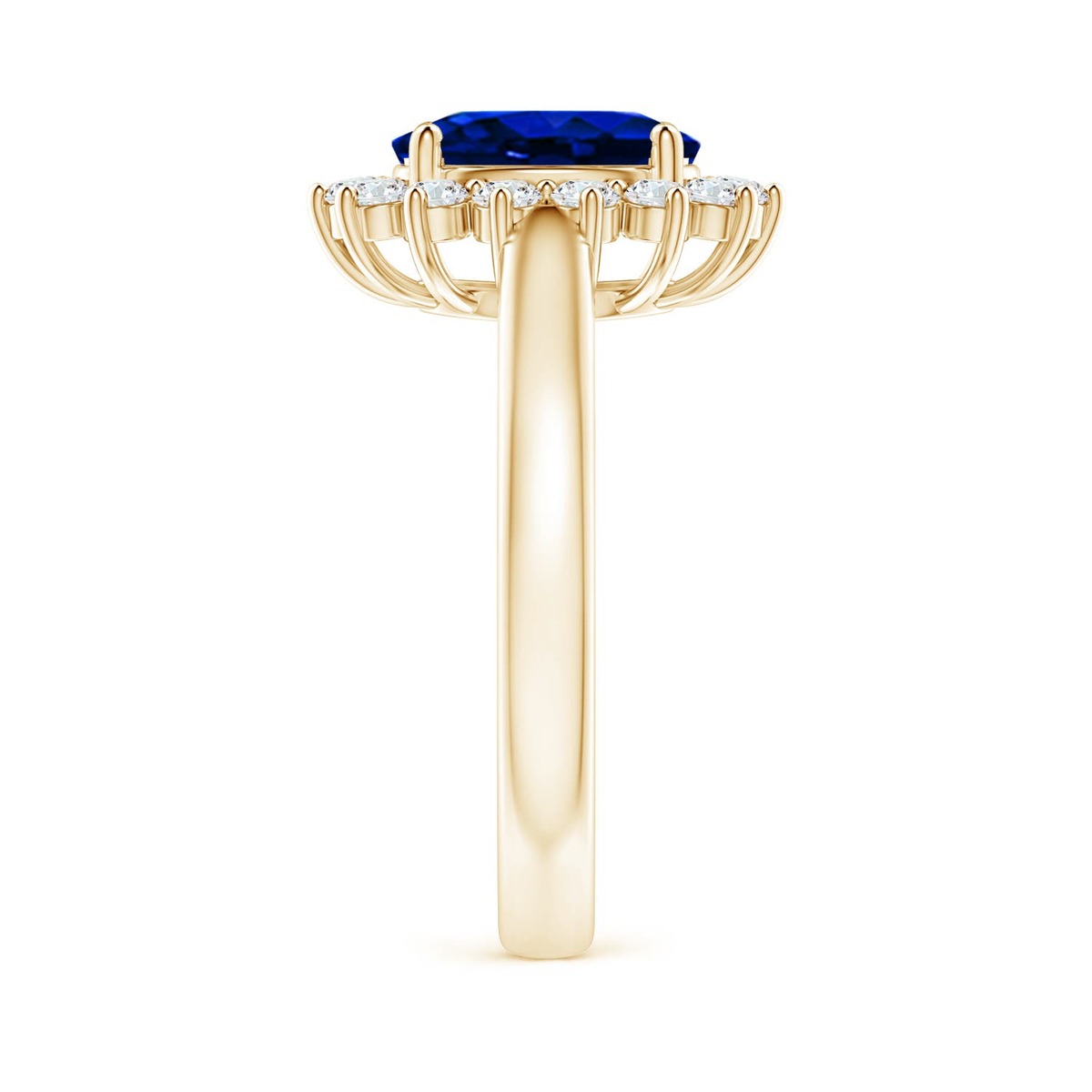 Angara Lab Grown Blue Sapphire Ring with Lab Diamond Halo in 14K Gold (9x7MM)