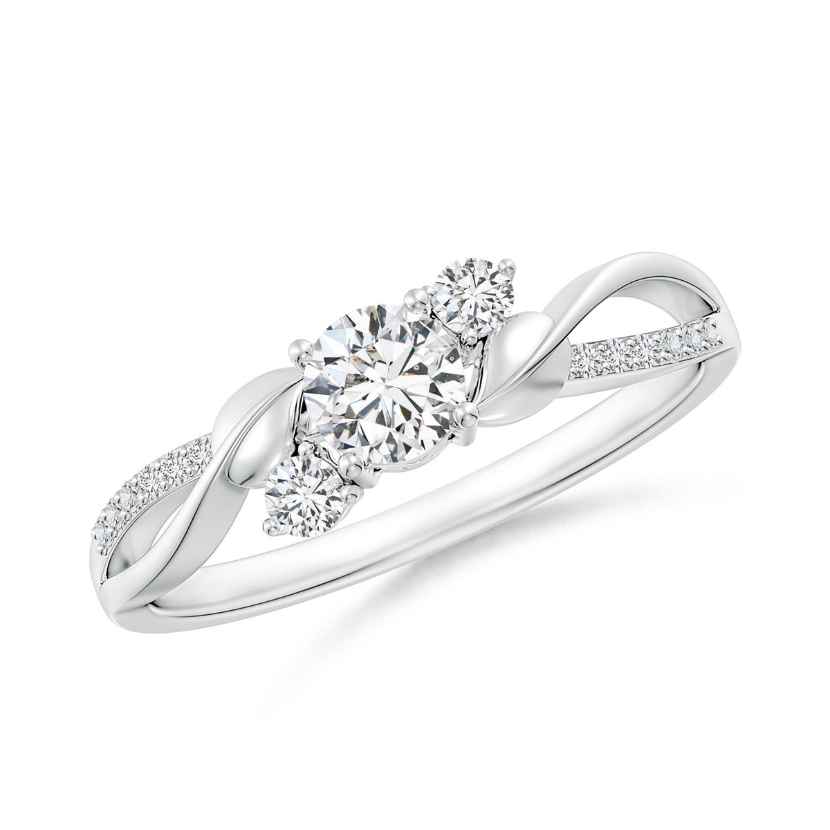 Angara Natural Three Stone Diamond Twisted Vine Ring in 14K Solid Gold (4.4MM)