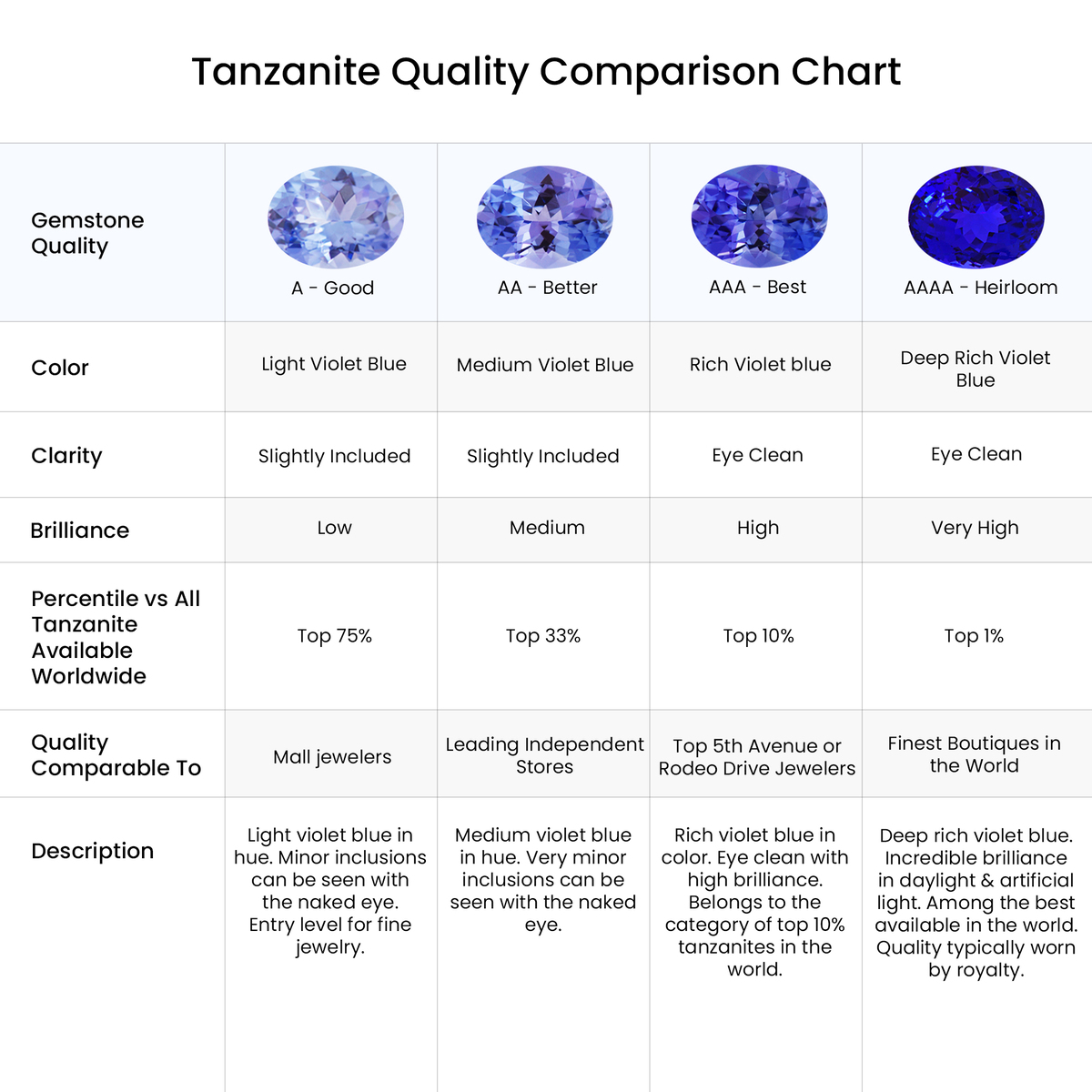 Stone Specification: Natural Tanzanite | 8 mm | Grade AAAA-Heirloom